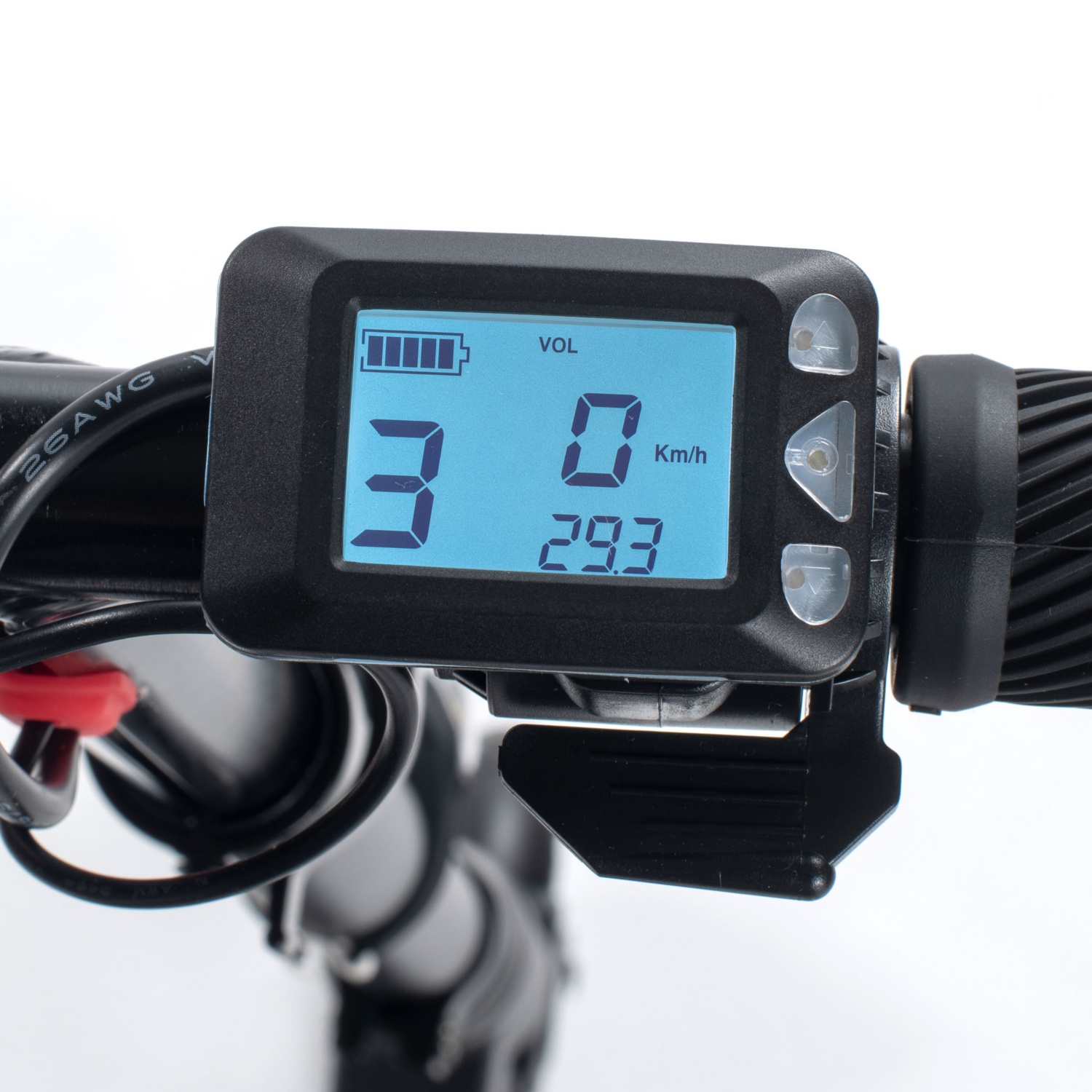 • Bremsen: Kotflügel-Reibungsbremse, elektrische Motorbremse am Lenker