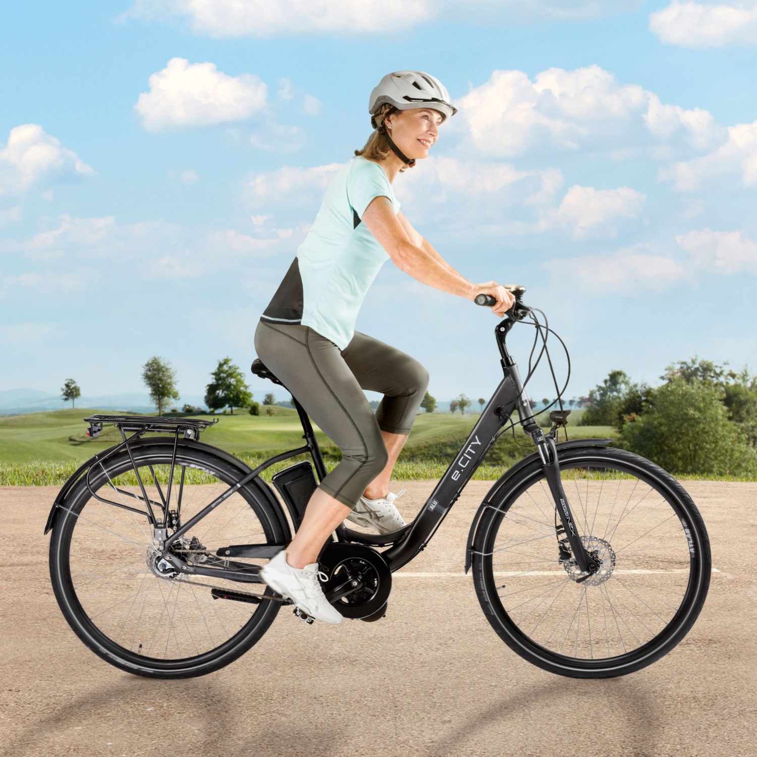 • Motor:kompakter und leiser Mittelmotor (250 W), bis 25 km/h Fahrunterstützung, mit Anfahr-/Schiebehilfe bis 6 km/h