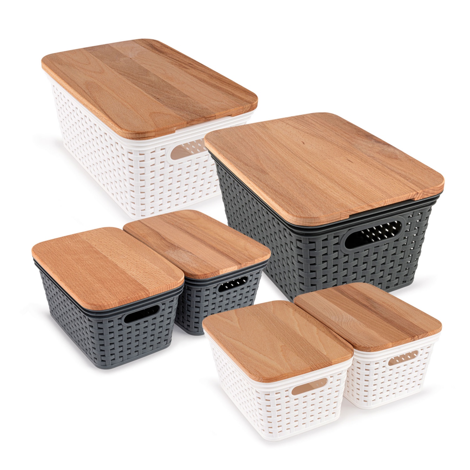 EASYHOME Aufbewahrungskörbe Rattan mit Holzdeckel