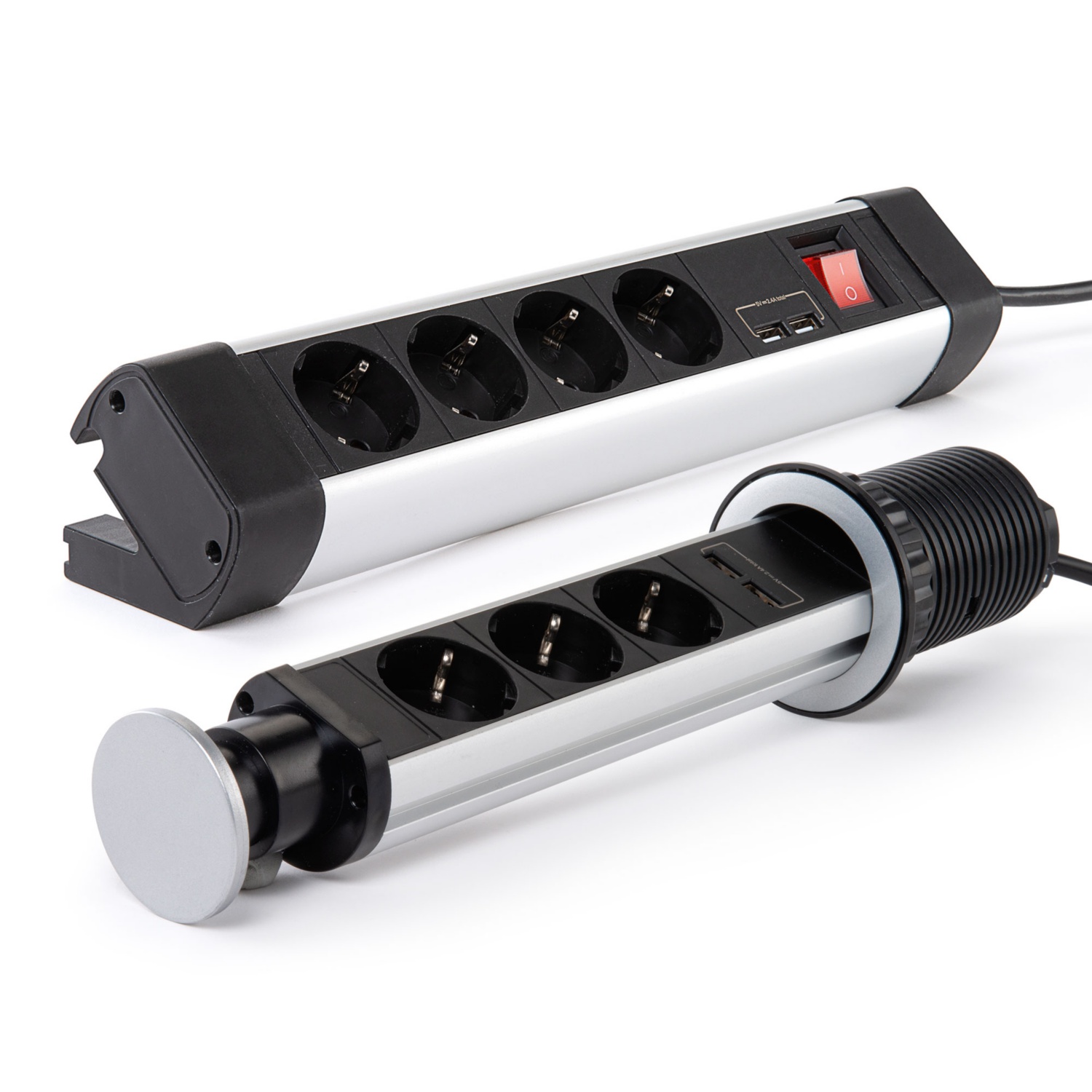 Design Tischsteckdosenleiste mit 4 Schutzkontaktsteckdosen: