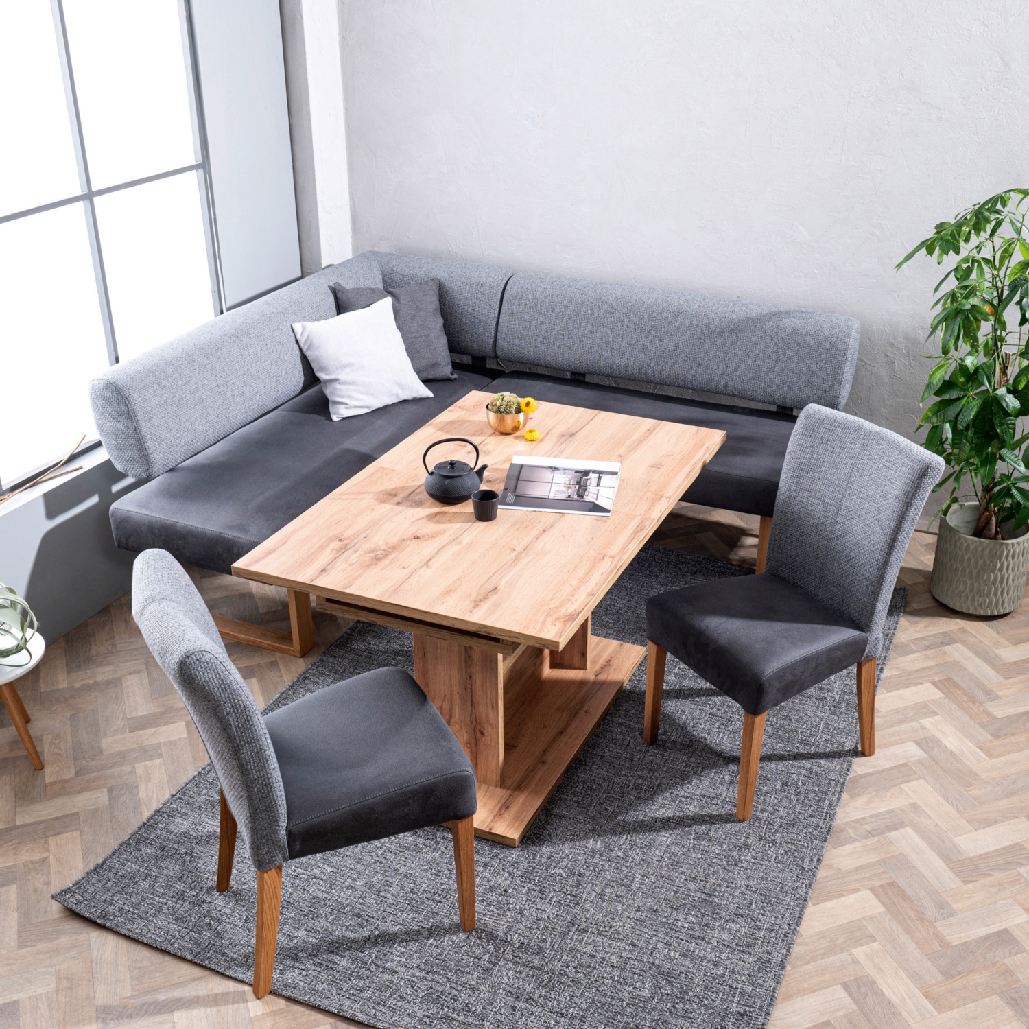 Eckbank Madrid Uni-Grau gemustert, Rechts