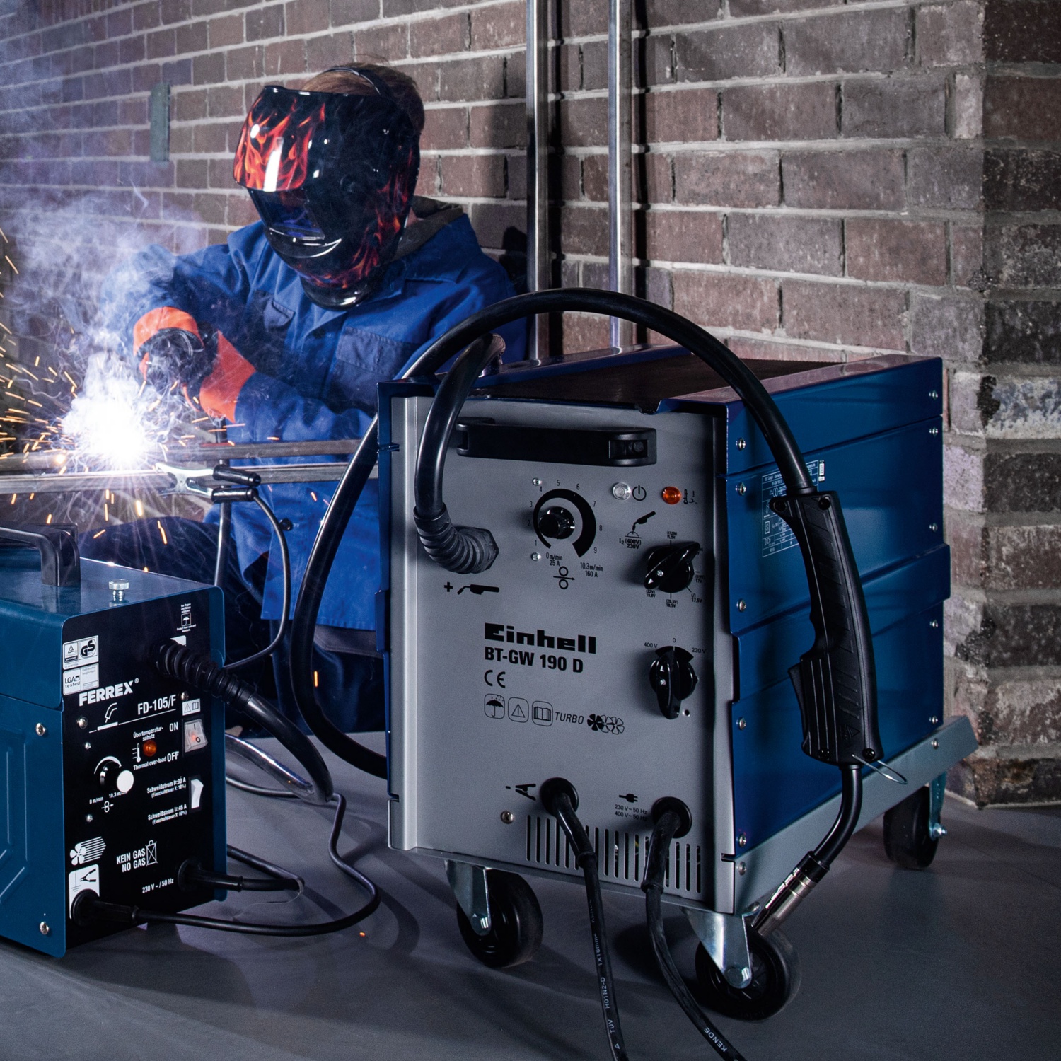 • leistungsstarkes Schutzgas-Schweißgerät für lange Arbeitseinsätze dank Ventilatorkühlung