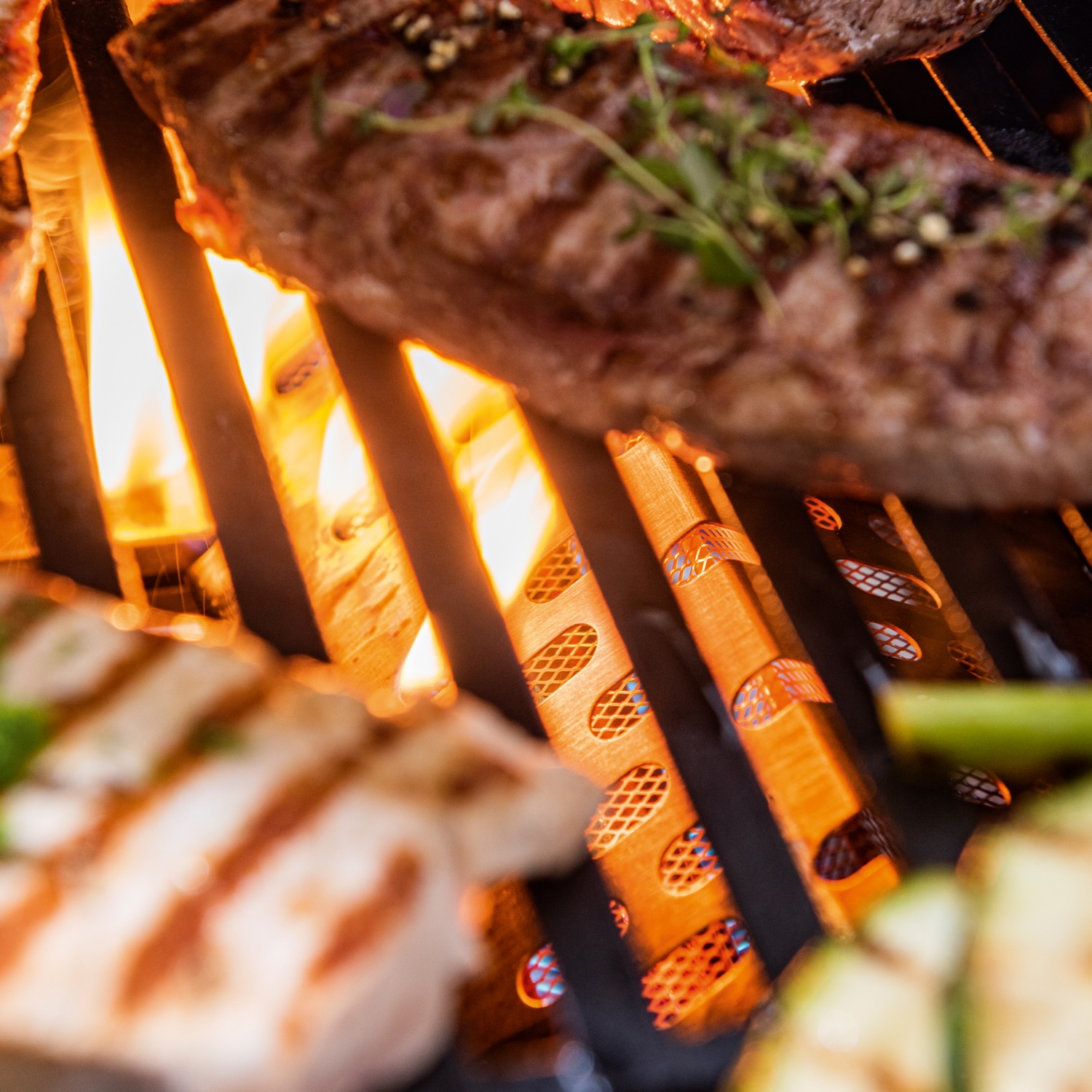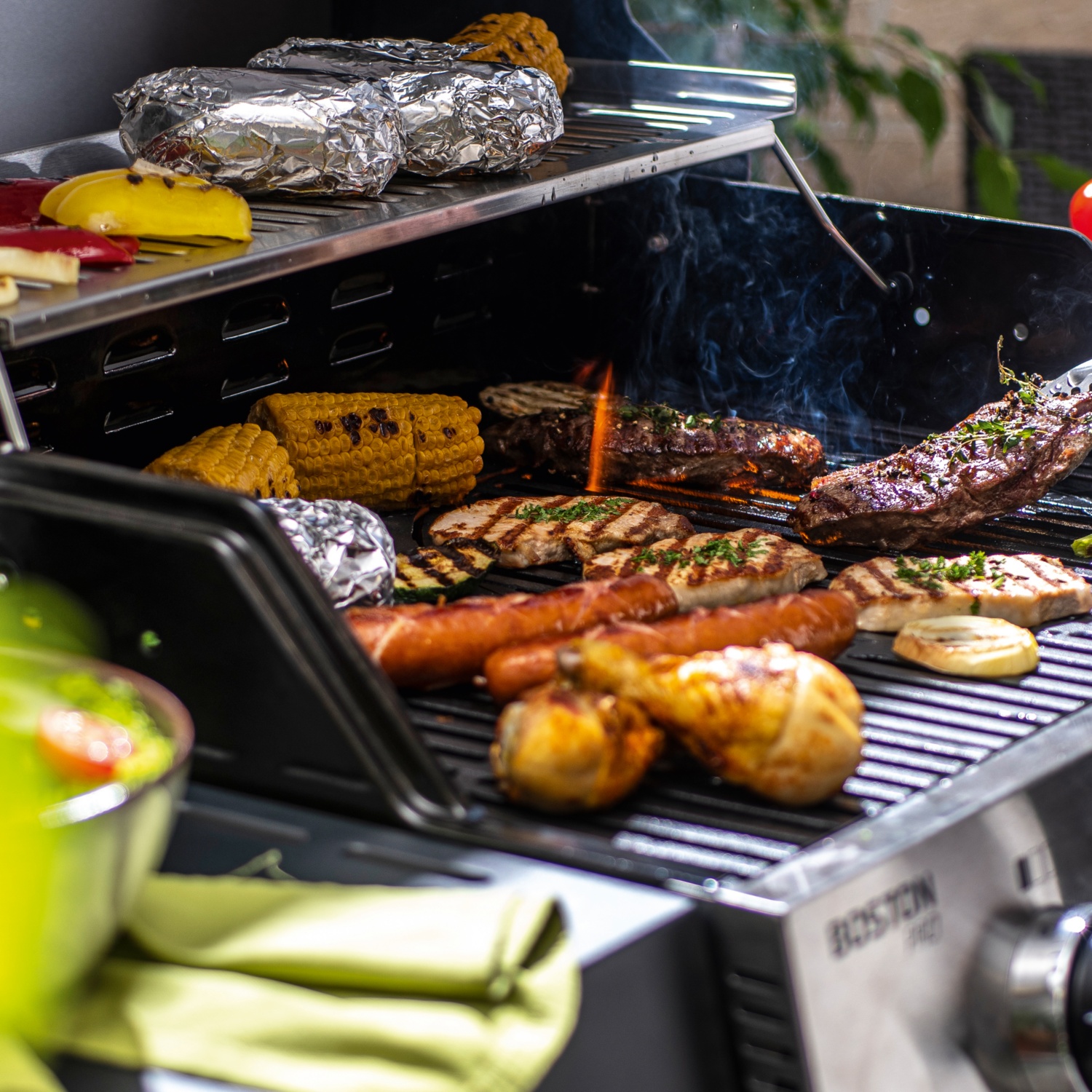• 3 stufenlos regulierbare Edelstahlbrenner, davon 2 x 3,5 kW und 1 x 4,2 kW (TURBO ZONETM) für direktes und indirektes Grillen