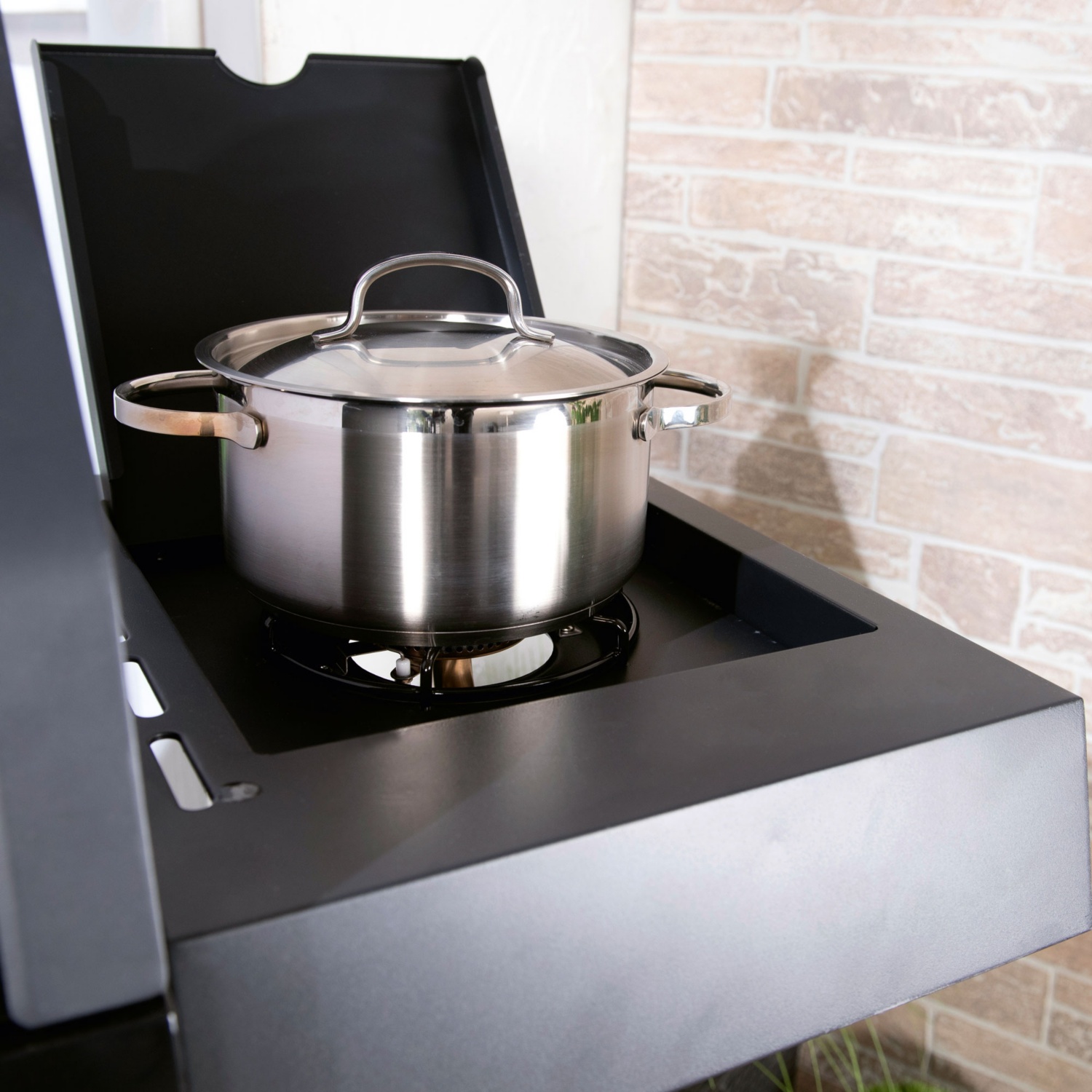 • leistungsstarker Infrarotbrenner (4,0 kW) und zusätzlicher Seitenkocher (3,15 kW) mit Abdeckplatte
