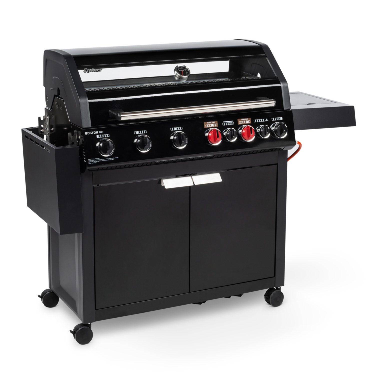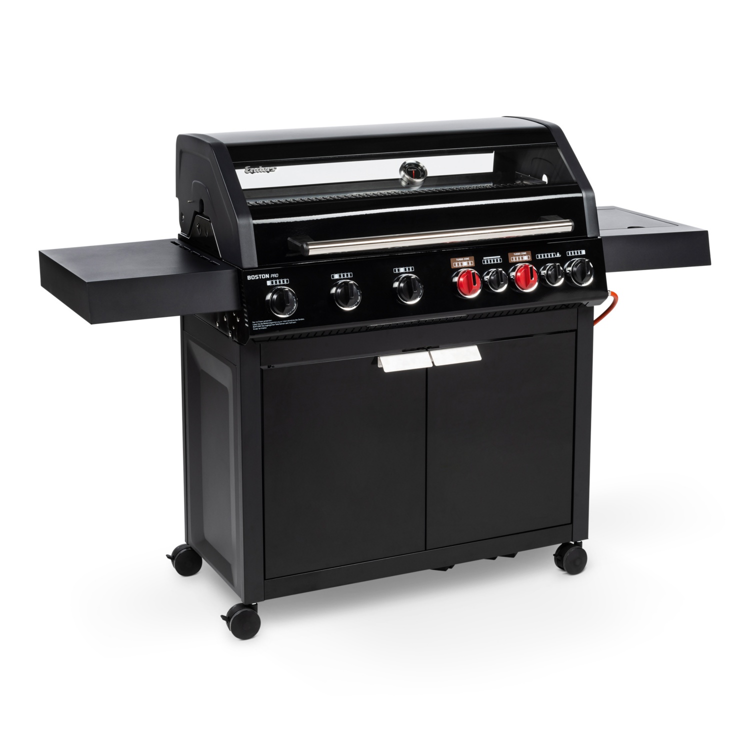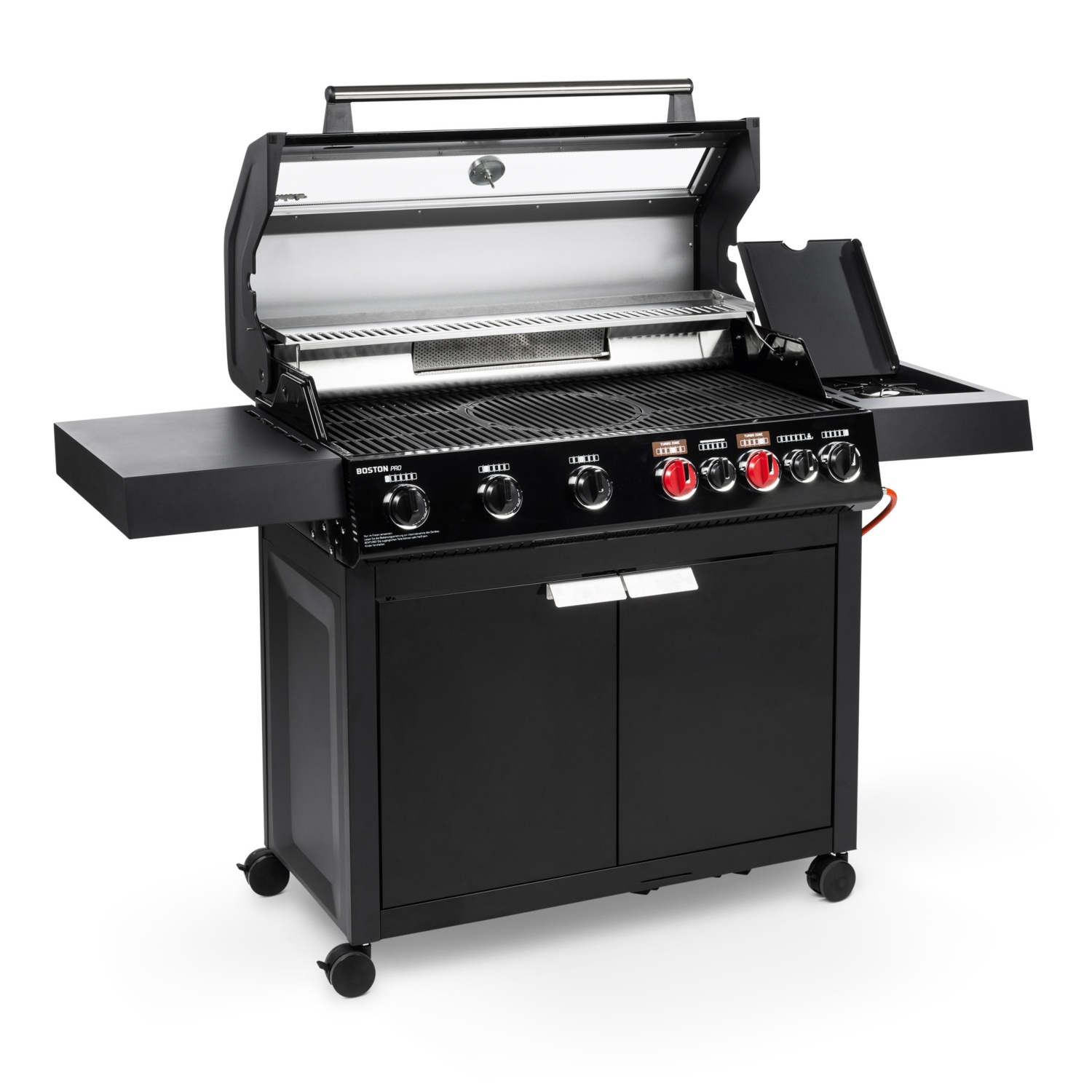 • 6 stufenlos regulierbare Edelstahlbrenner (4 x 3,0 kW + 2 x 4,2 kW TURBO ZONETM) für kraftvolles direktes und indirektes Grillen