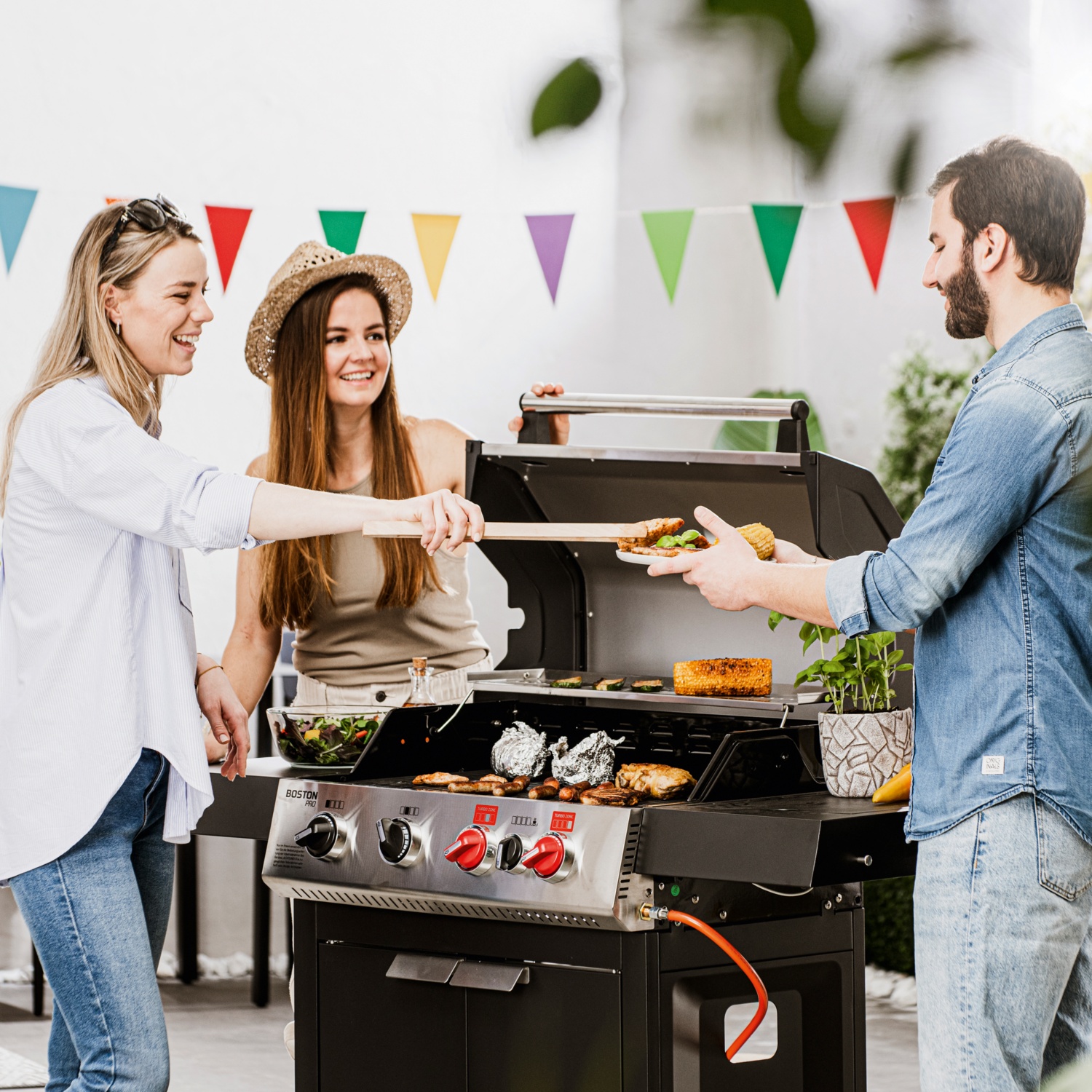 • 4 stufenlos regulierbare Edelstahlbrenner (2 x 3,5 kW + 2 x 4,2 kW) für kraftvolles direktes und indirektes Grillen