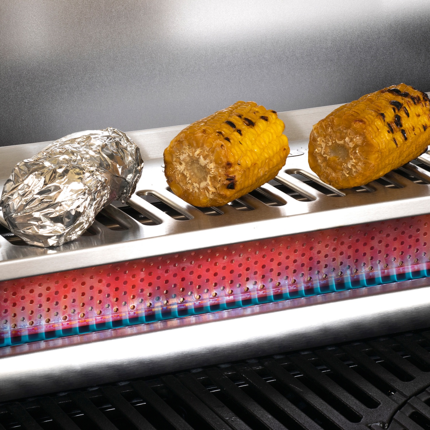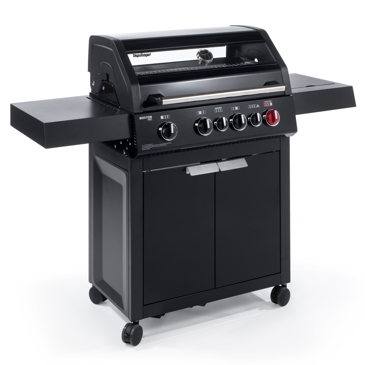 • 4 stufenlos regulierbare Edelstahlbrenner (3 x 3,5 kW + 1 x 4,2 kW TURBO ZONETM) für kraftvolles direktes und indirektes Grillen
