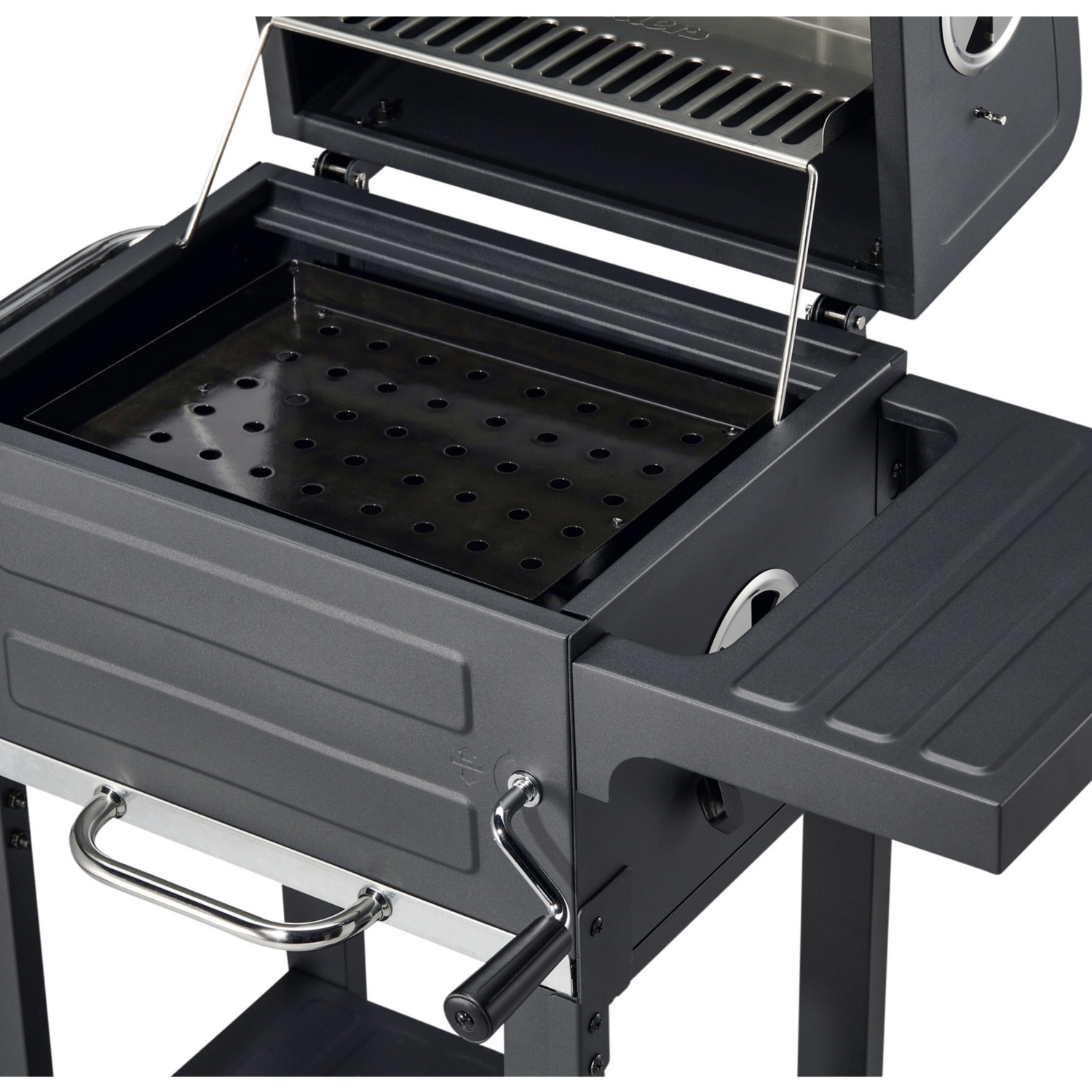 • Grillhaube und Korpus aus hochtemperatur-pulverbeschichtetem Stahl