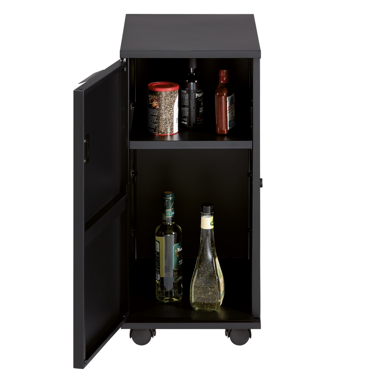 Mit unserem modularen Trolley werden Stau(t)räume wahr. Das rollende Platzwunder verschafft dir zusätzliche Aufbewahrungsmöglichkeiten. Mit zwei starken Magneten dockst du den variablen Rollcontainer an deinen BBQ an. Ob auf der linken oder rechten Seite, ist ganz dir überlassen. Gewiss ist nur, dass du es mit vier flexiblen Lenkrollen auf die komfortabelste Art und Weise tust. Nebenbei bemerkt: Auch in Sachen Ordnung erwartet dich maximale Bequemlichkeit. Denn dank der Unterteilung durch ein zusätzliches Regalfach wirst du nicht lange suchen, aber schneller finden.