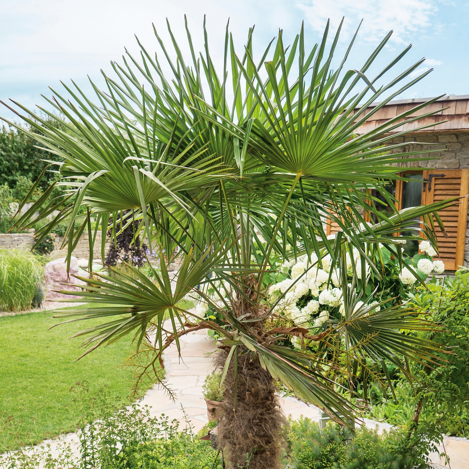 • besonders dekorative und robuste Palme für Terrasse und Garten
