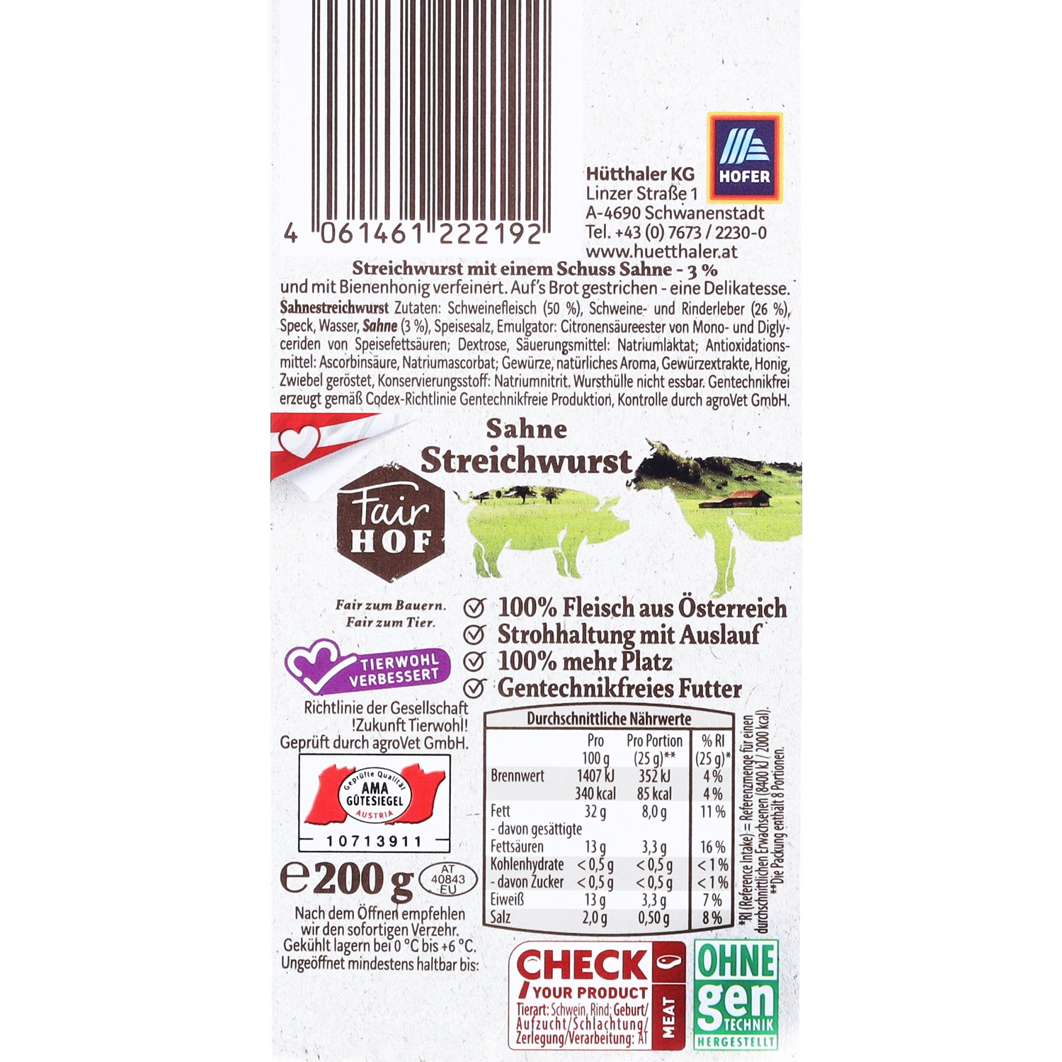 FAIR HOF Streichwurst, Sahne