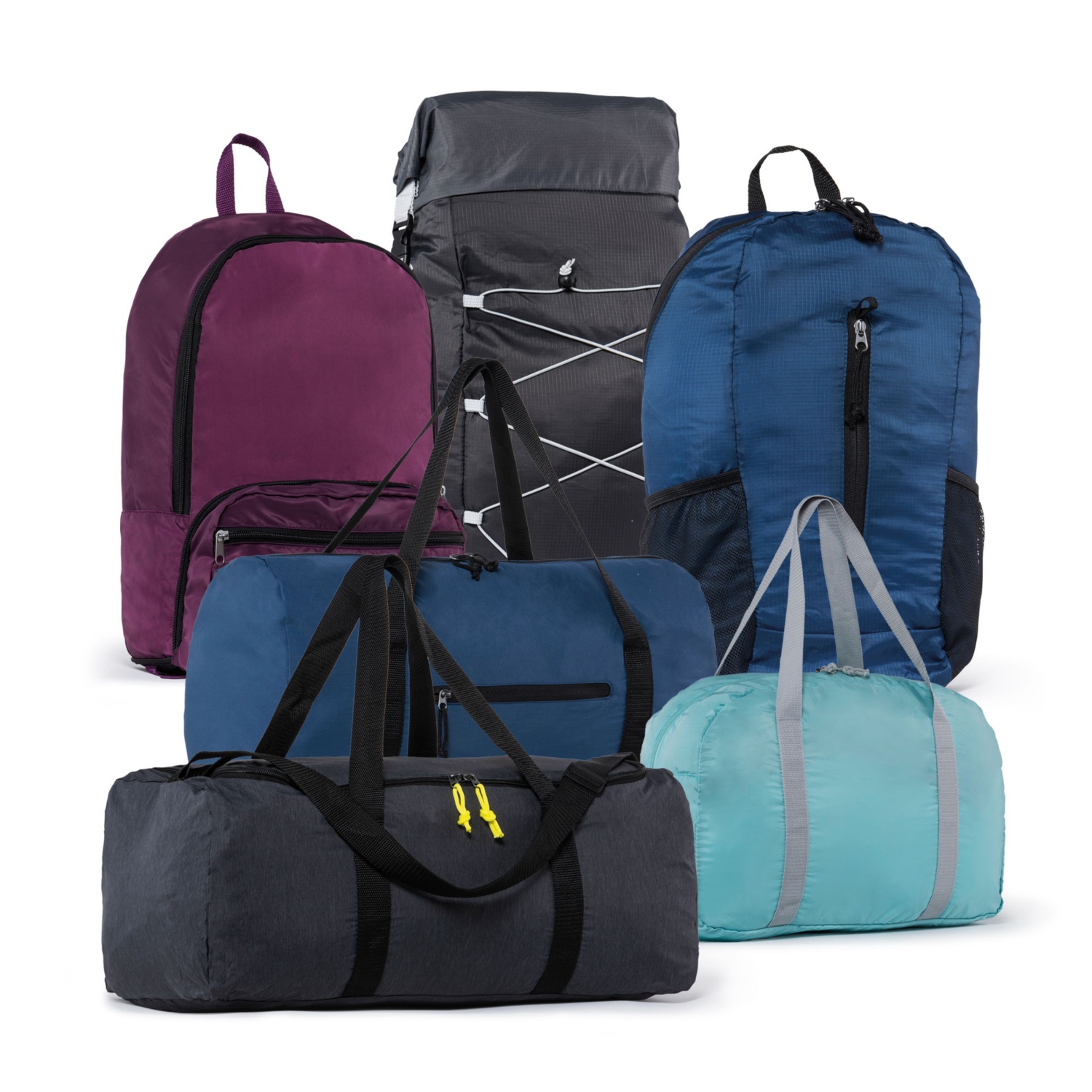 • verschiedene, ultraleichte, zusammenfaltbare Rucksack- und Taschenmodelle