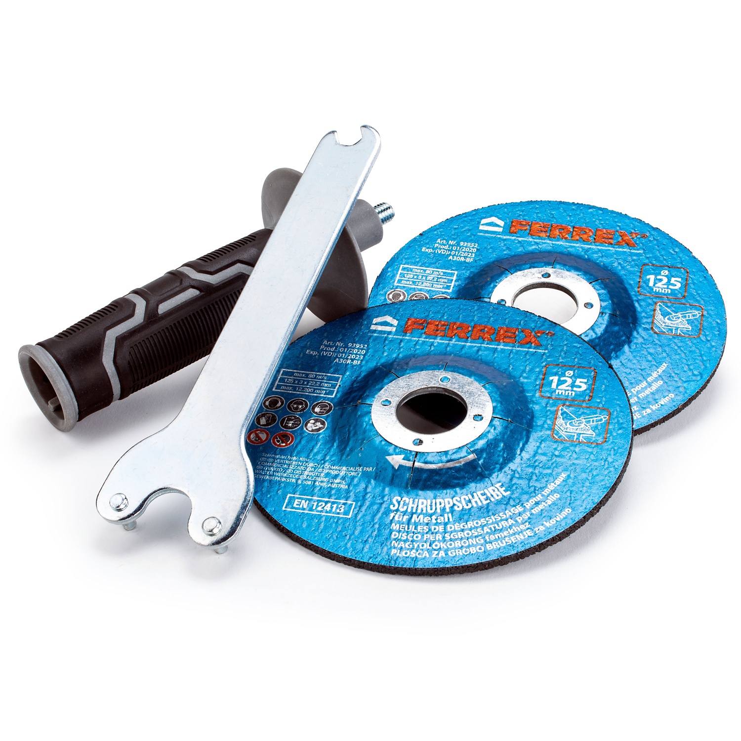 • inkl. 2 Schleifscheiben, Inbusschlüssel und Zusatzhandgriff