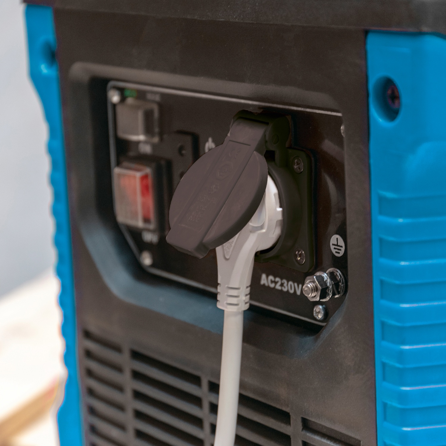 ausgestattet mit einer 230-V-Wechselstrom-Steckdose