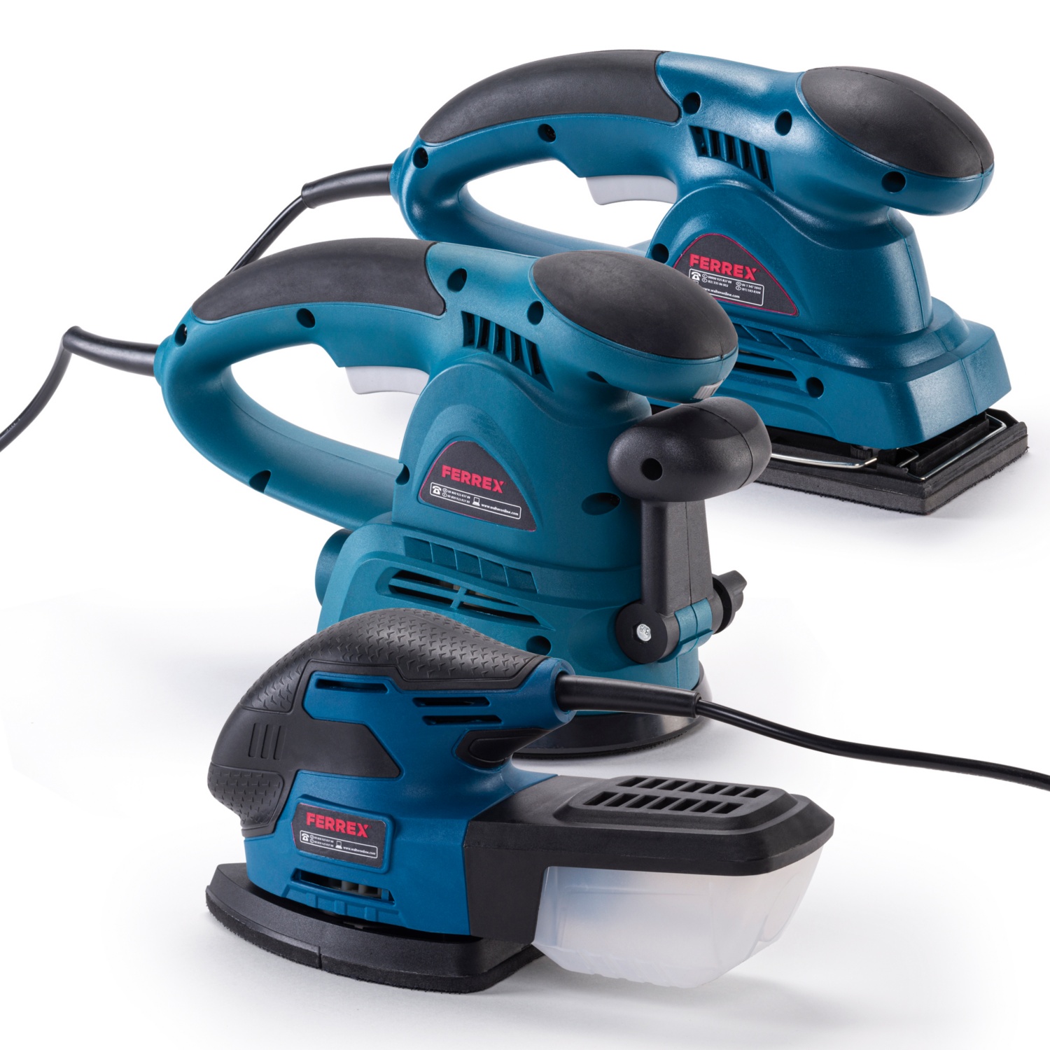 Hand-/Faust-Schleifer: 220 W, perfektes Arbeiten sowohl auf der Fläche als auch in Ecken und Winkeln, Leerlaufschwingzahl: 13.000 U/Min., Schleiffläche: 140 x 140 x 80 mm, inkl. Staubfangsack,