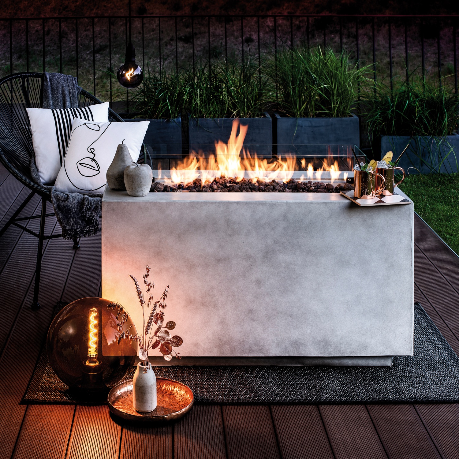 • hochwertiger und dekorativer Gas-Feuertisch für den Outdoorbereich