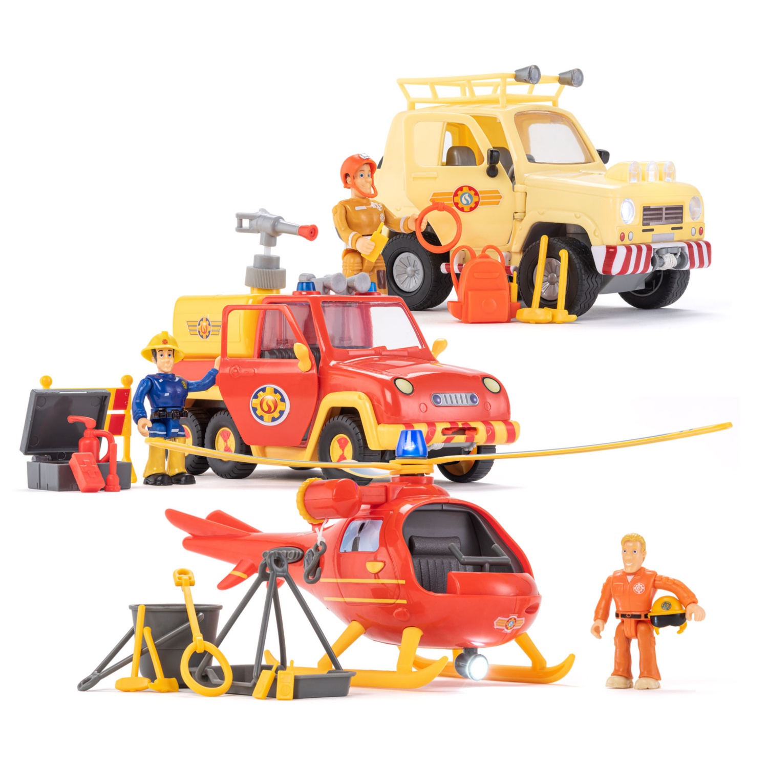 Sam Feuerwehrauto: mit Originalsound und Wasserspritzfunktion, Türen zum Öffnen, Elvis-Figur und viel Zubehör, Länge: 19 cm,