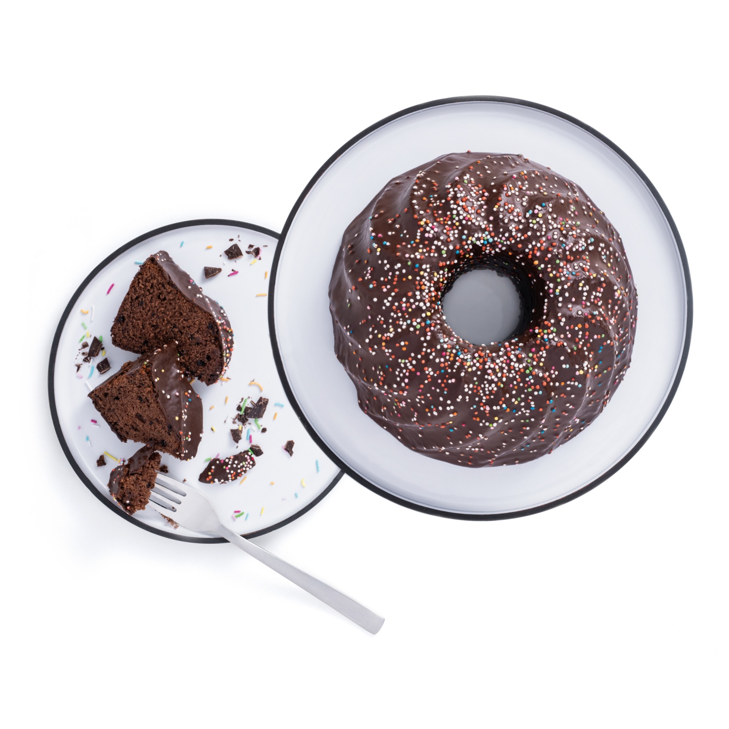 feiner Rührkuchen mit Schokoladenstückchen und bunten Zuckerstreuseln