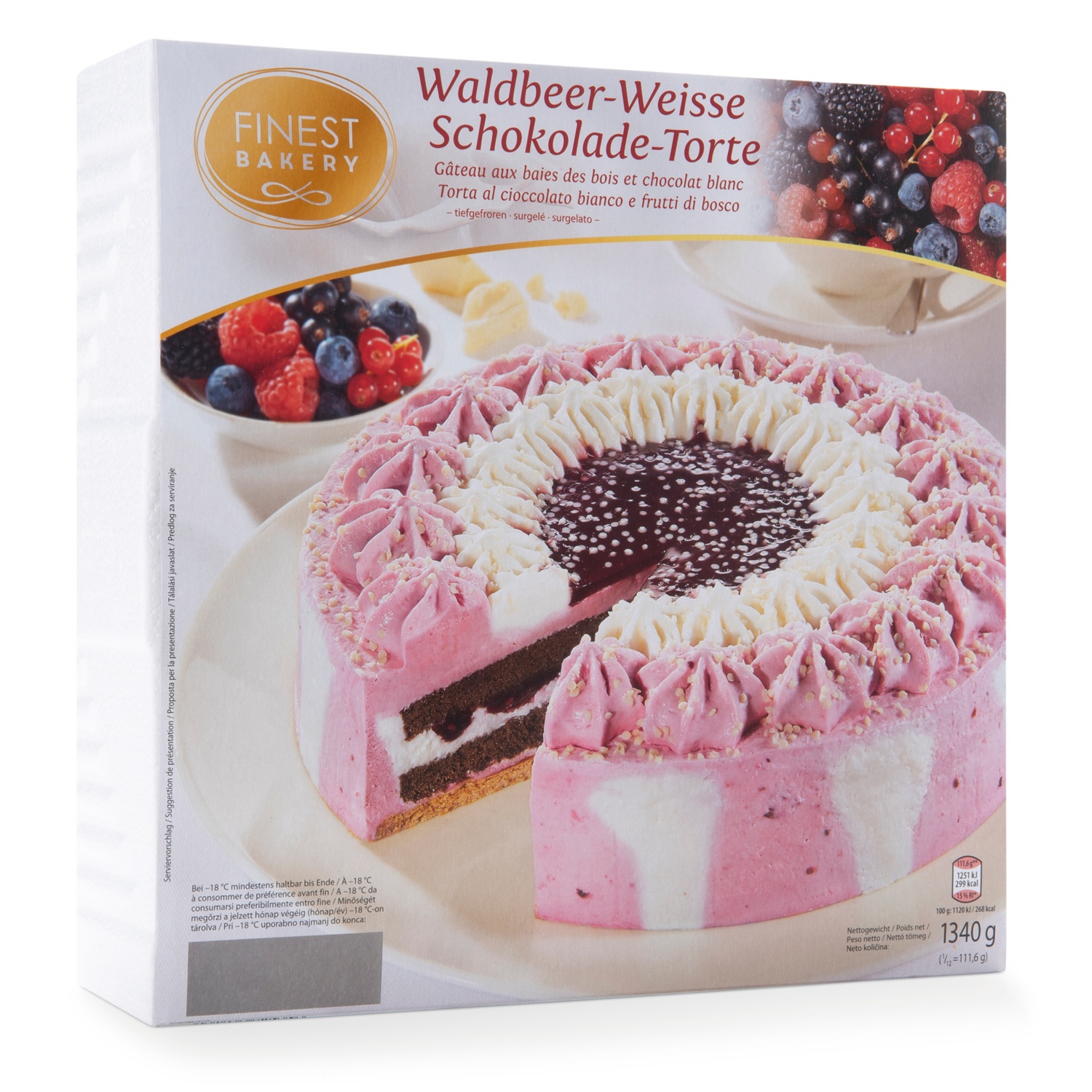 FINEST BAKERY Premium Torte, Waldbeer-Weiße Schokolade