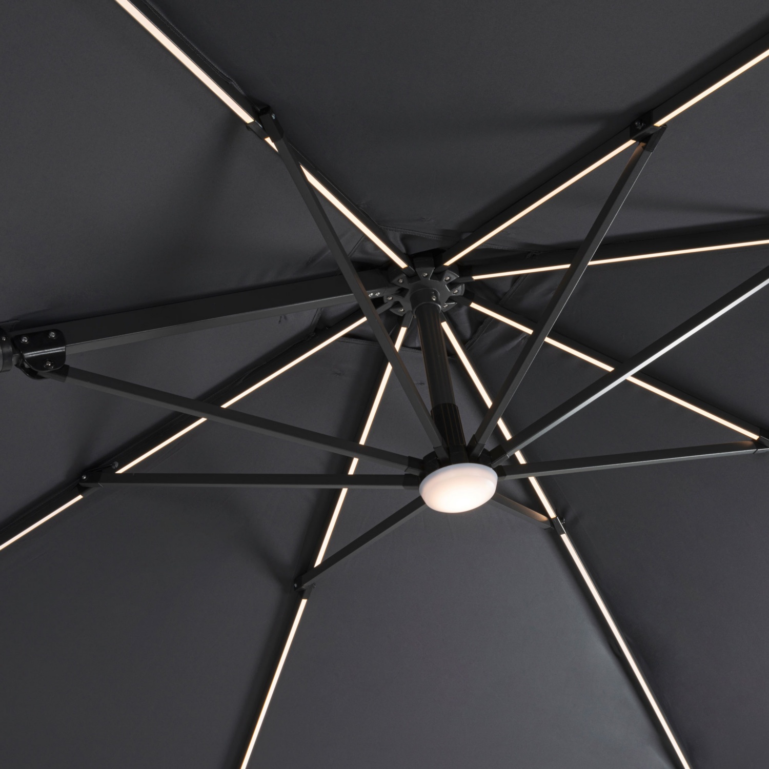 • LED Streifen in den Schirmstreben integriert