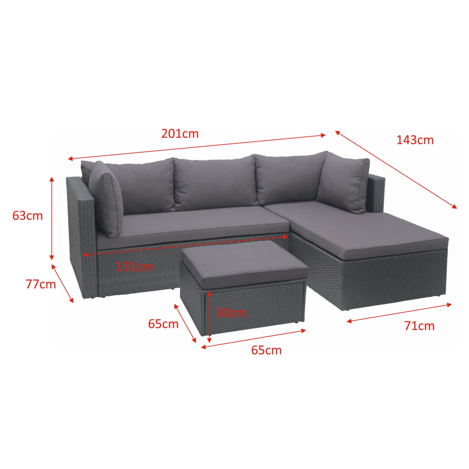 • Bank: 131 x 77 x 63 cm (L x B x H)
