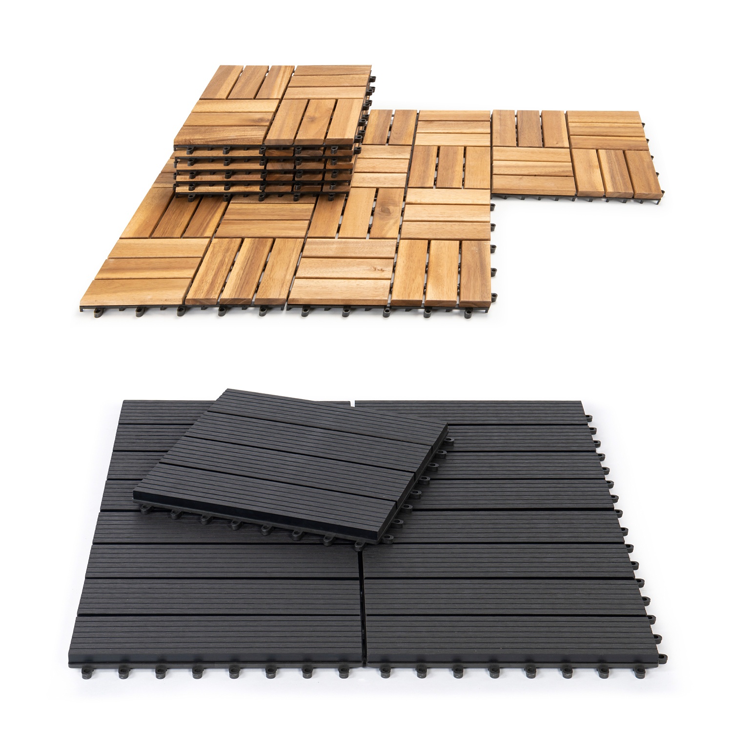 für den Innen- und Außenbereich wie z. B. Terrasse, Balkon oder Wintergarten geeignet, einfach zu verlegen mittels Stecksystem, Vor oder unmittelbar nach Verlegung müssen die Holzfliesen ausreichend eingeölt werden Holzfliesen