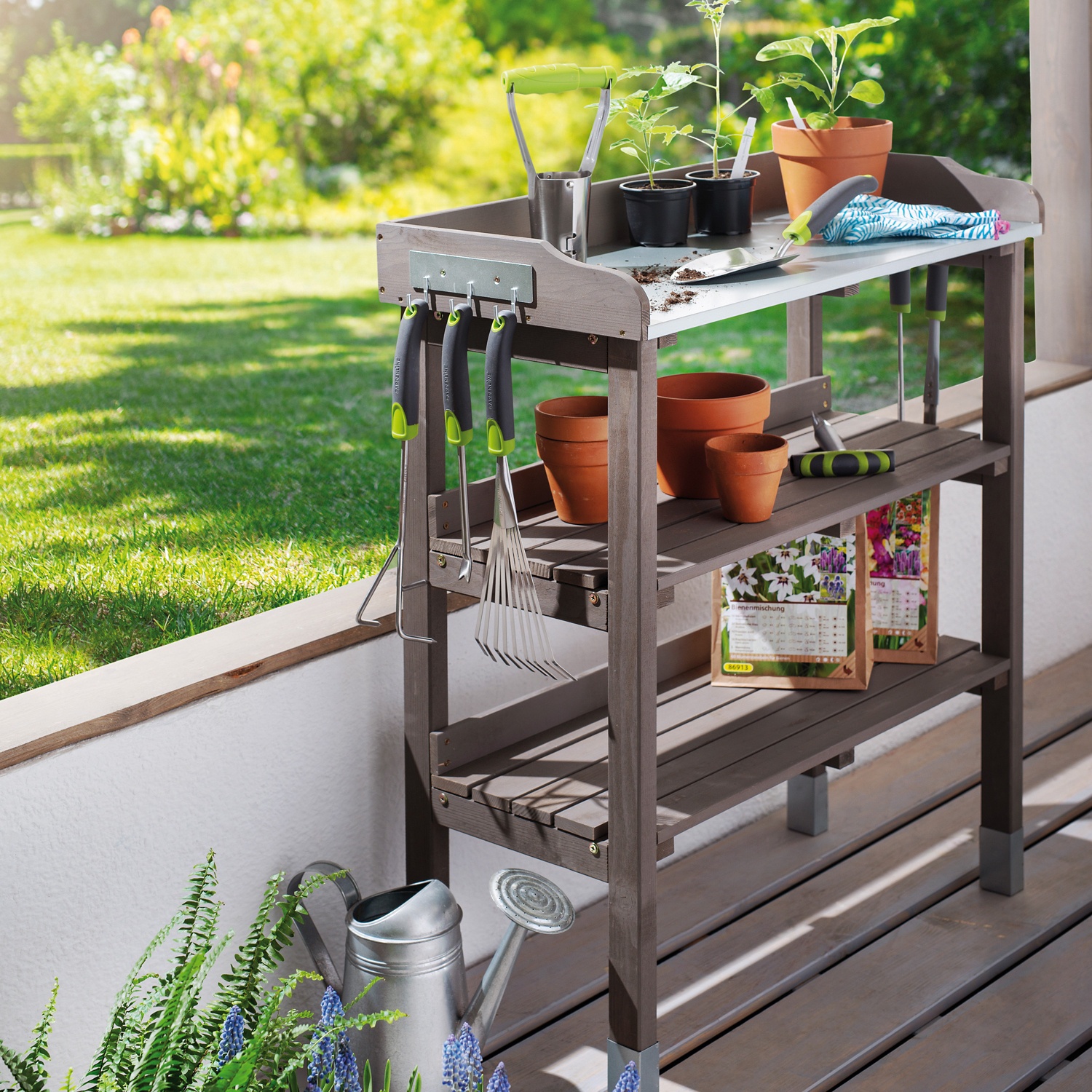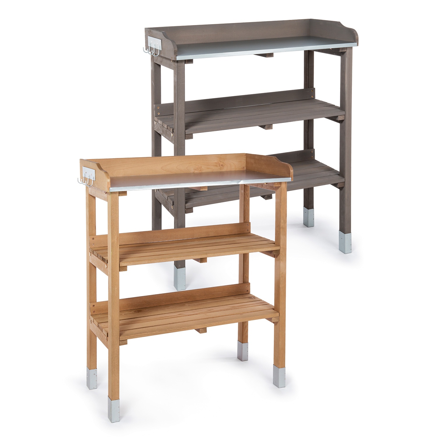 Pflanztisch aus FSC-zertifiziertem Holz, mit verzinkter Arbeitsplatte und zwei großen Ablageflächen, jeweils eine Hakenleiste an beiden Seiten aus verzinktem Stahl, in Natur oder Grau erhältlich, Maße der Arbeitsfläche: 76 x 37 x 9 cm, Höhe der Tischplatte: 85 cm Bitte beachten Sie, dass diese Aktionsartikel, im Unterschied zu unserem dauerhaft erhältlichen Sortiment, nur in begrenzter Anzahl zur Verfügung stehen. Abgabe nur in Haushaltsmengen und solange der Vorrat reicht. Sollten bestimmte Produkte, trotz sorgfältiger Planung, aufgrund unerwartet hoher Nachfrage, am ersten Aktionstag ausverkauft sein, bitten wir um Verständnis. Bei Textilien und Schuhen sind teilweise Modelle nicht in allen Größen erhältlich. Beim Kauf eines Elektro-/Elektronikartikels können Sie Zug um Zug ein Gerät gleichwertiger Art unentgeltlich in unserer Filiale zurückgeben. Kein Flaschenpfand, inkl. sämtlicher Steuern. Alle Artikel ohne Dekoration. Die Abbildungen verstehen sich als Serviervorschläge bzw. Symbolfotos. Bei Preissenkungen ist die Angabe der %-Senkung kaufmännisch gerundet. Wir führen unterschiedliche Verpackungen. In unseren Filialen wird jeweils nur eine Verpackungsart angeboten. Bitte beachten Sie, dass vereinzelte Filialen ein abweichendes Sortiments- und Aktionsartikelangebot führen. Diese sind auf hofer.at/filialen zu finden sowie vor Ort entsprechend gekennzeichnet. Technische und optische Änderungen sowie Satz- und Druckfehler vorbehalten.