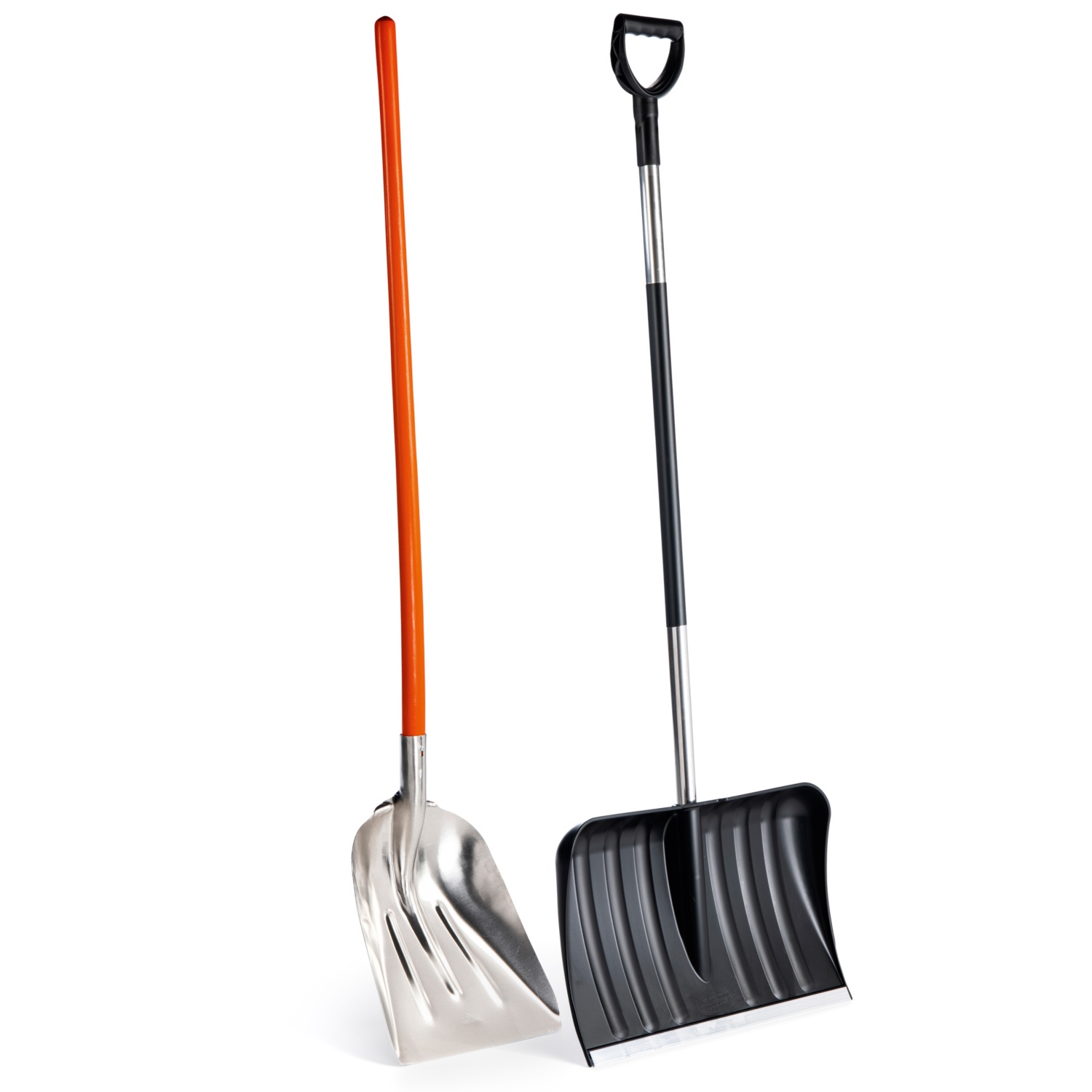 Schneeschieber:55 cm breites Kunststoffblatt mit Aluminium-Stoßkante, Aluminium-Stiel mit Kunststoffüberzug, D-Griff, Gesamtlänge: 159 cm