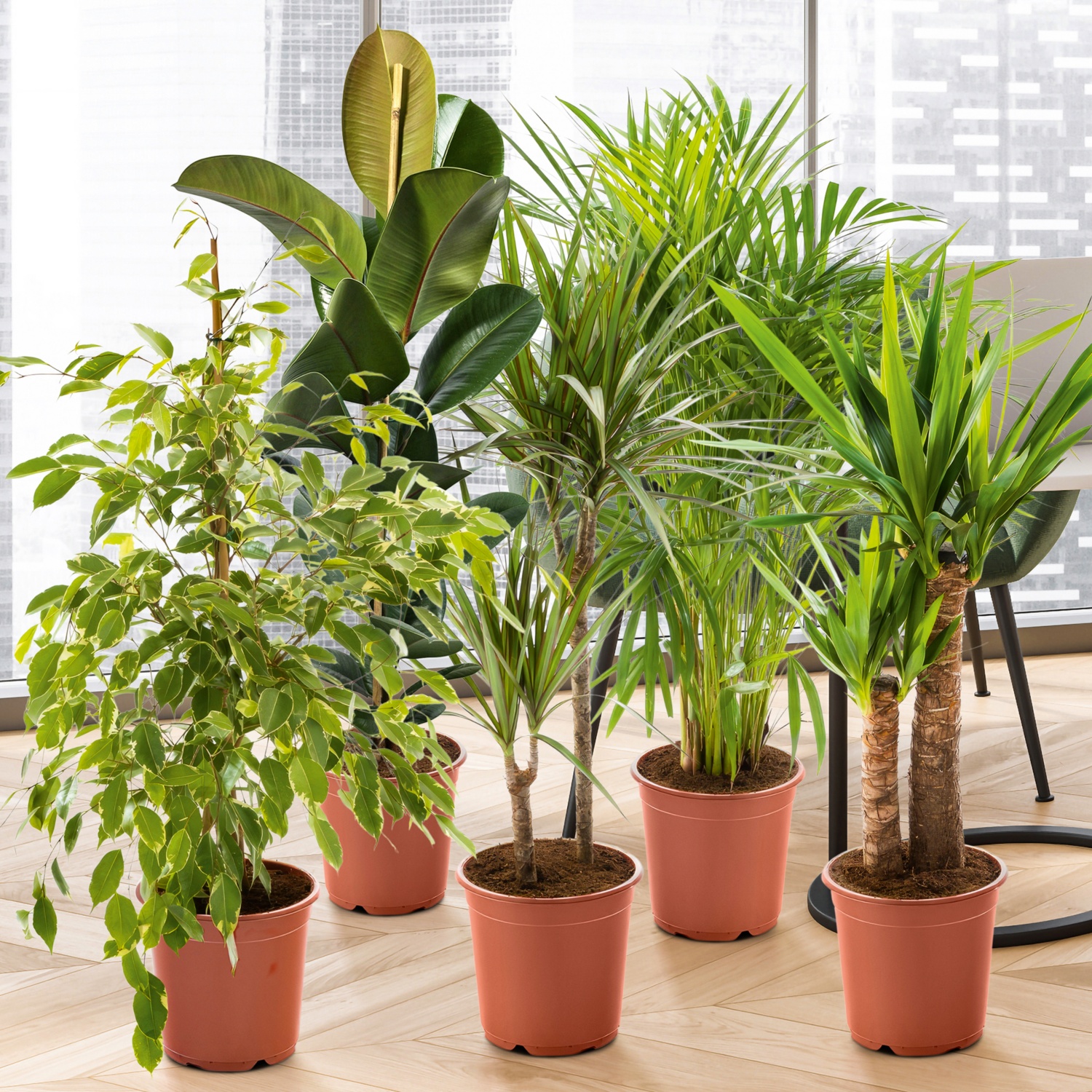 • pflegleichte Grünpflanzen wie Ficus und Dracena in verschiedenen Sorten