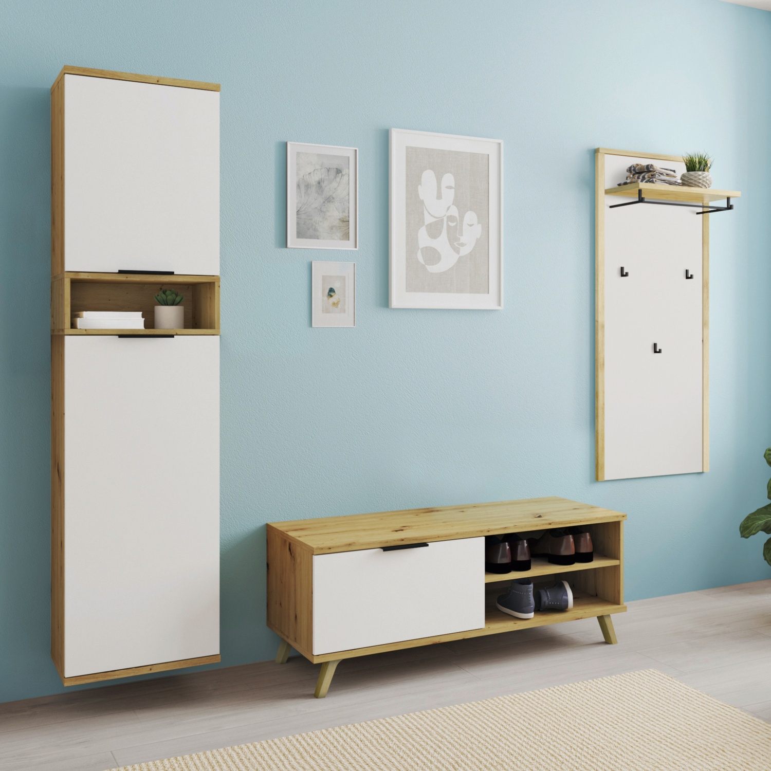 • Abmessungen Schuhkommode mit Nischenregal: 120 x 48 x 49 cm (L x B x T)