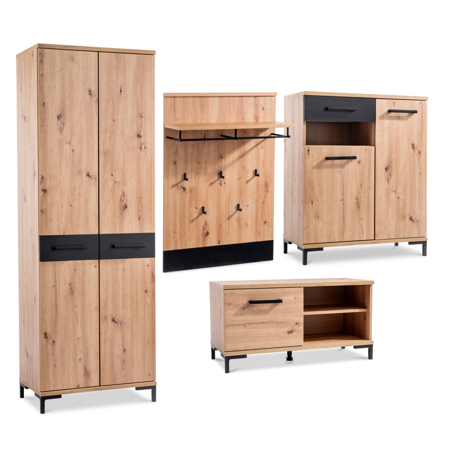 • Griffe und Kleiderstangen aus schwarzem Metall