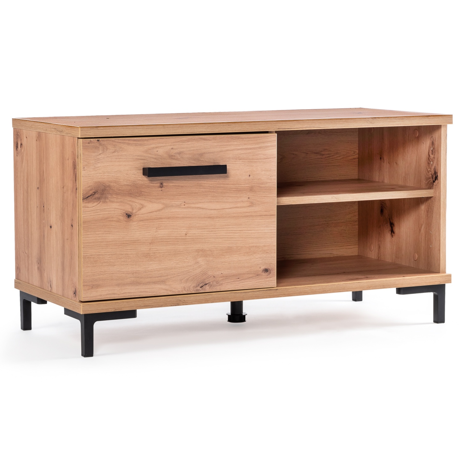• Kommode: mit 2 Türen, 1 Lade (Metallschienen geführt) und 1 Nische, 3 verstellbaren Einlegeböden, inkl. eingebauter Kippsicherung, Maße: 80 x 100 x 38 cm (B x H x T)