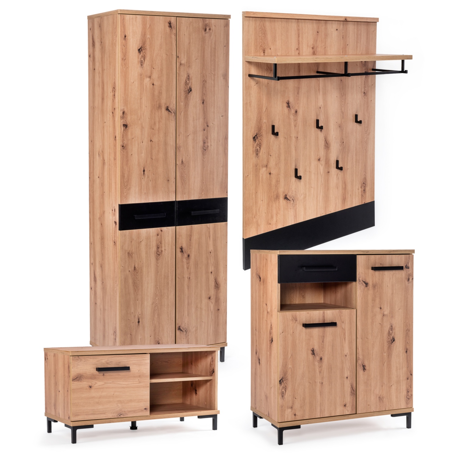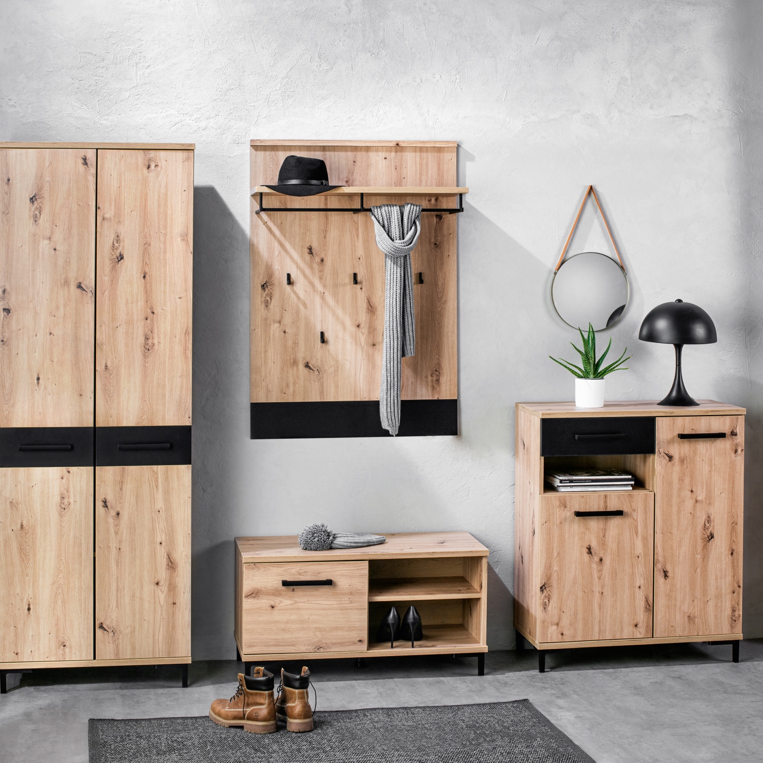 aus Wildeiche Melamin mit schwarzen Applikationen, moderne Griffe und Füße matt schwarz, bestehend aus: