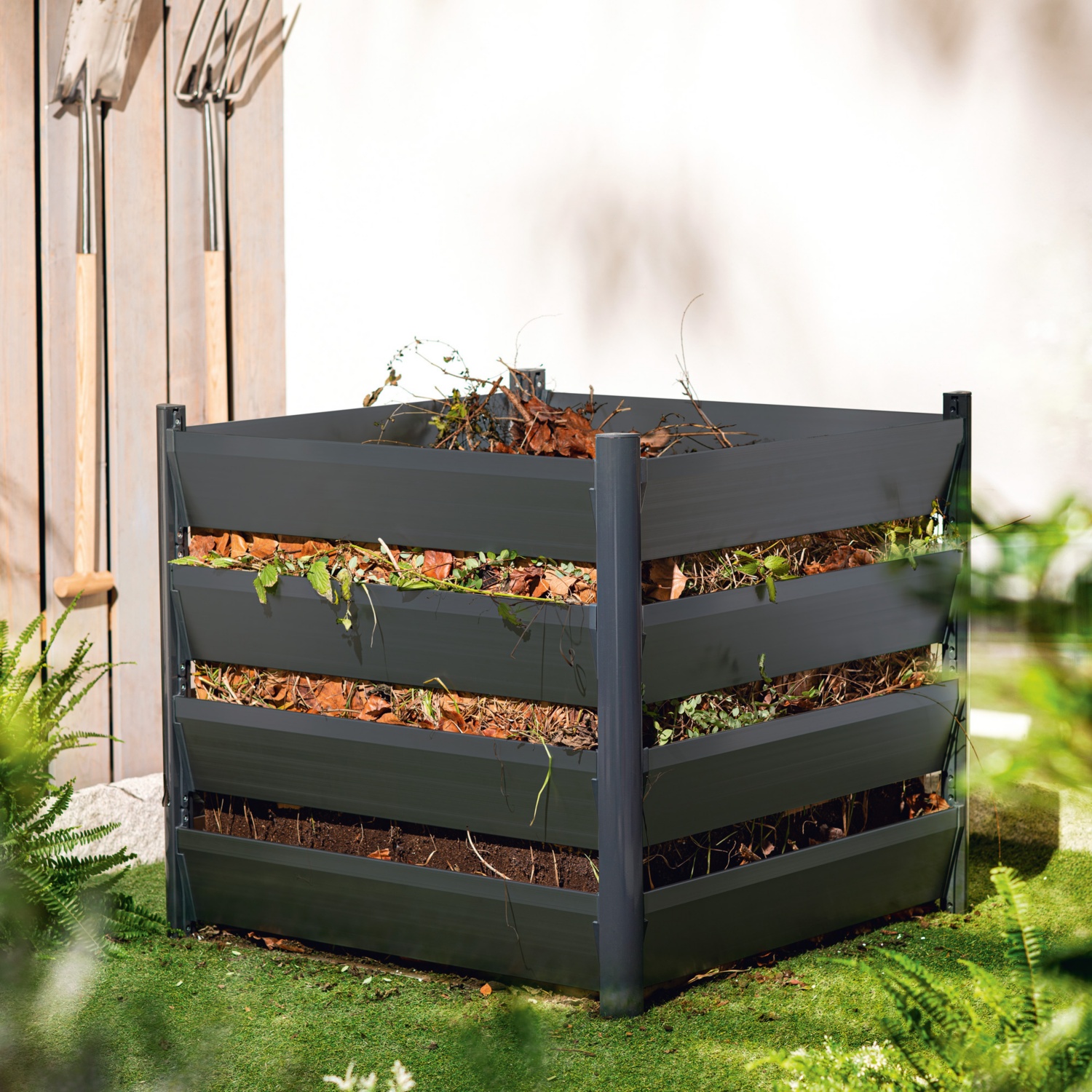 • Komposter aus formstabilen und korrosionsbeständigem Aluminium