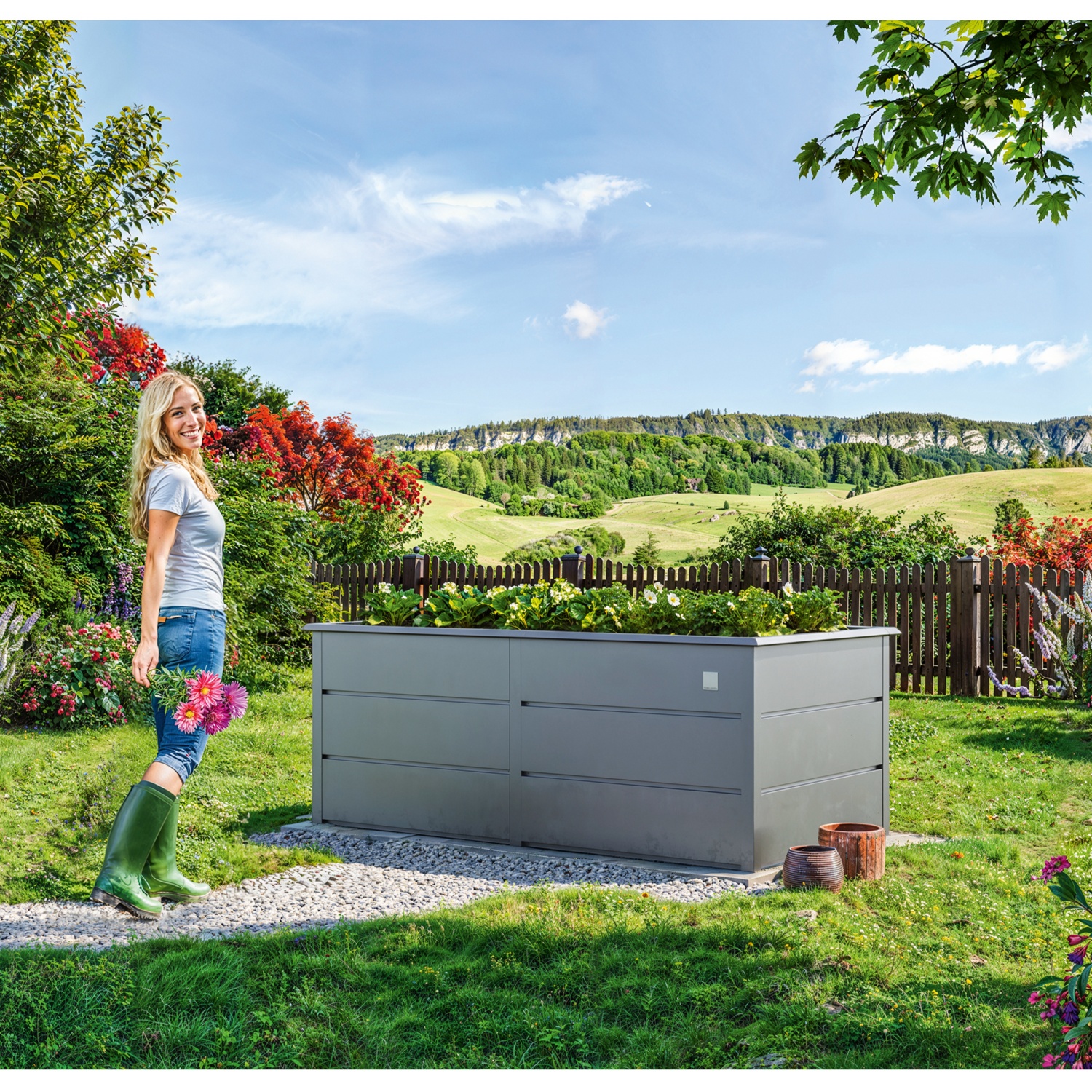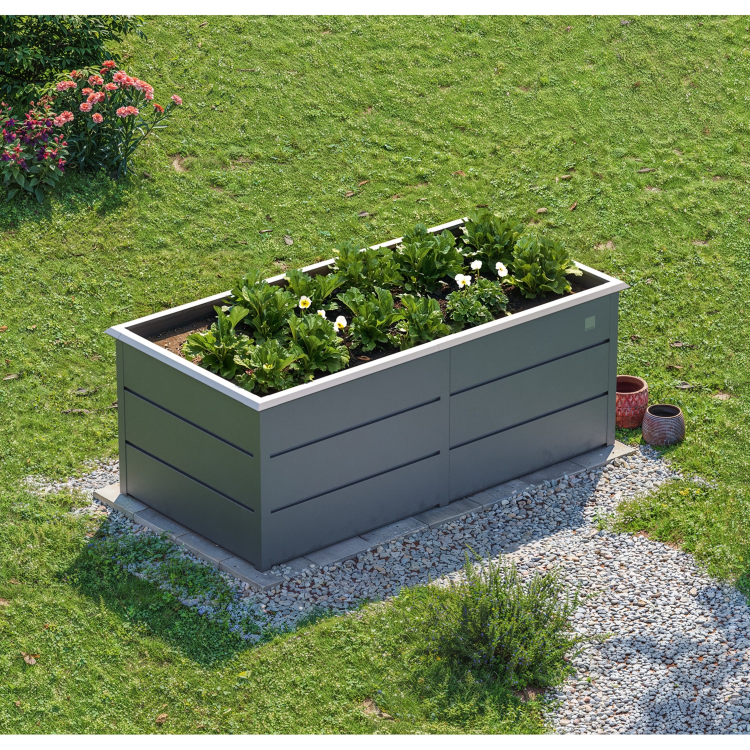 DasHochbeetverbindet die langlebige Robustheit mit der eleganten Optik anthrazitfarbenerPaneele. Die 30 mm starken Hohlkammer-Wandelemente sorgen für hervorragende Formstabilität und machen eine Innenfolie überflüssig. Mit kompakten Maßen von 200 x 85 x 77 cm passt es ideal in moderne Gärten und Terrassen.
