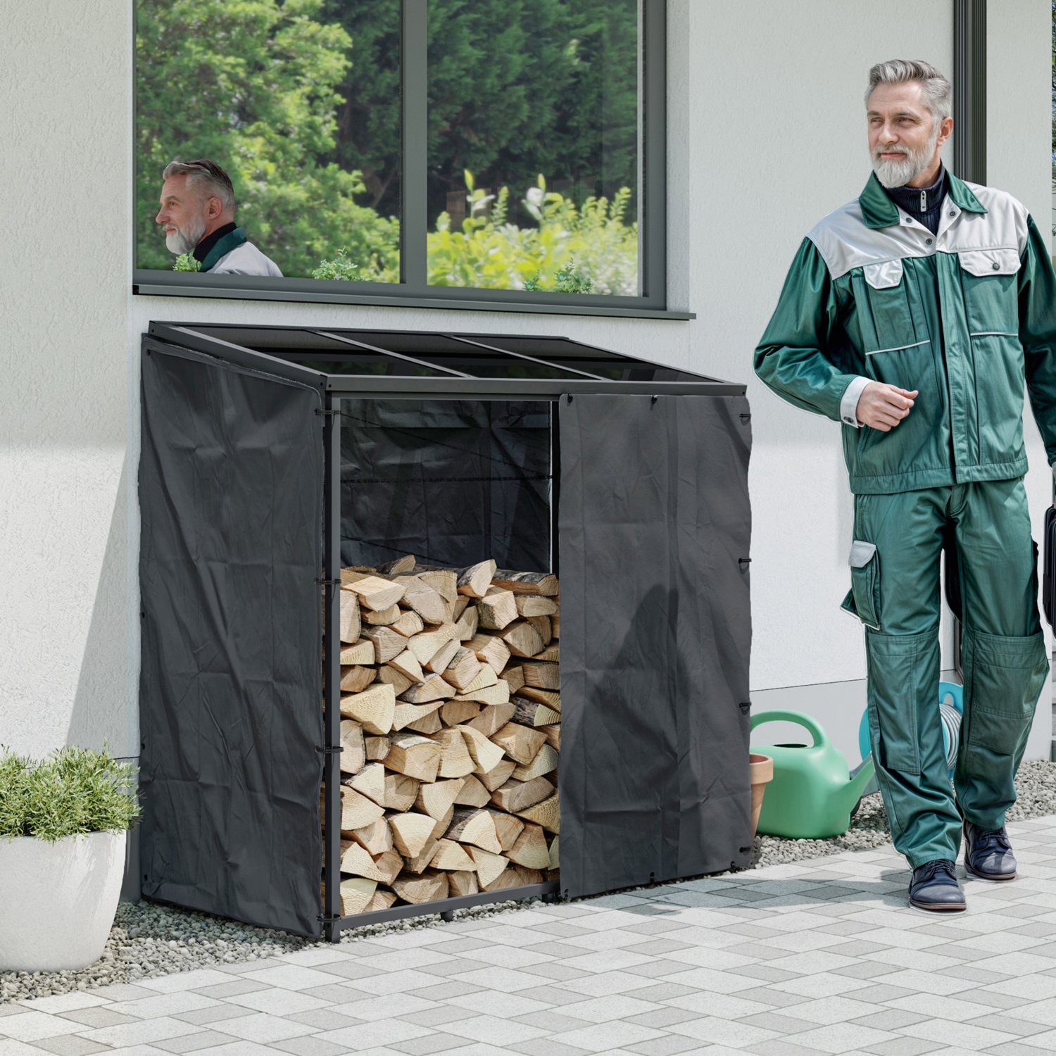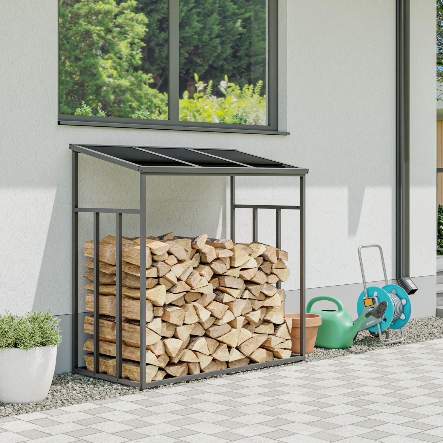 Mit diesem hochwertigen Holzlagerregal aus pulverbeschichtetem Stahl lagern Sie Ihr Brennholz nicht nur ordentlich, sondern auch optimal geschützt. Das moderne Design, die stabile Konstruktion und das langlebige Dach machen es zu einem zuverlässigen Partner für jede Jahreszeit. Entdecken Sie die Vorteile, die dieses Regal zu einem echten Must-have für Garten, Terrasse oder Hauswand machen: