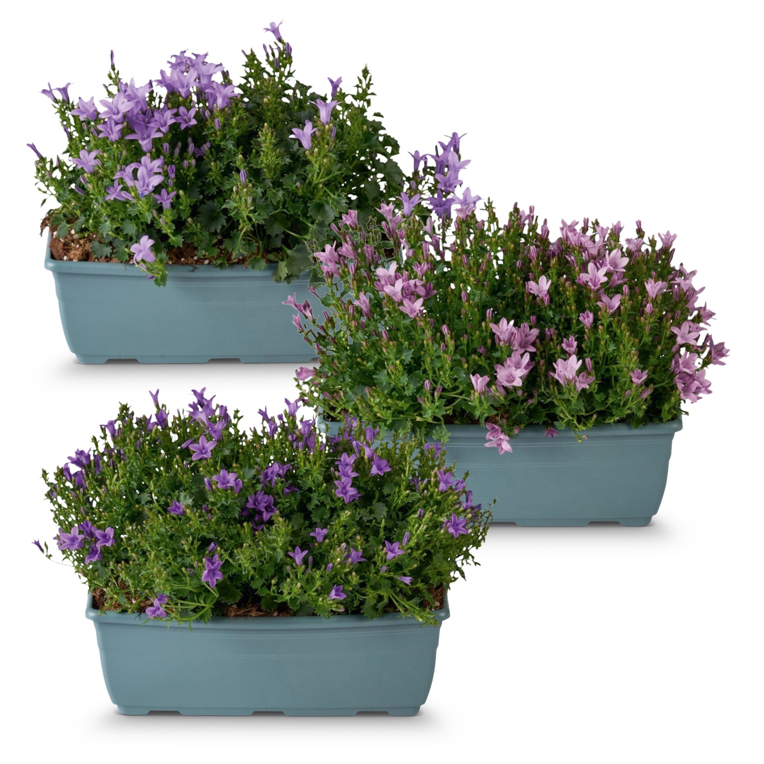 im 10,5 cm Kulturtopf, Ø 20 cm Schale oder im Balkonkasten, Höhe inkl. Gefäß: ca. 18 - 25 cm, in den Blütenfarben Purple, Lavendel, Pink und Weiß