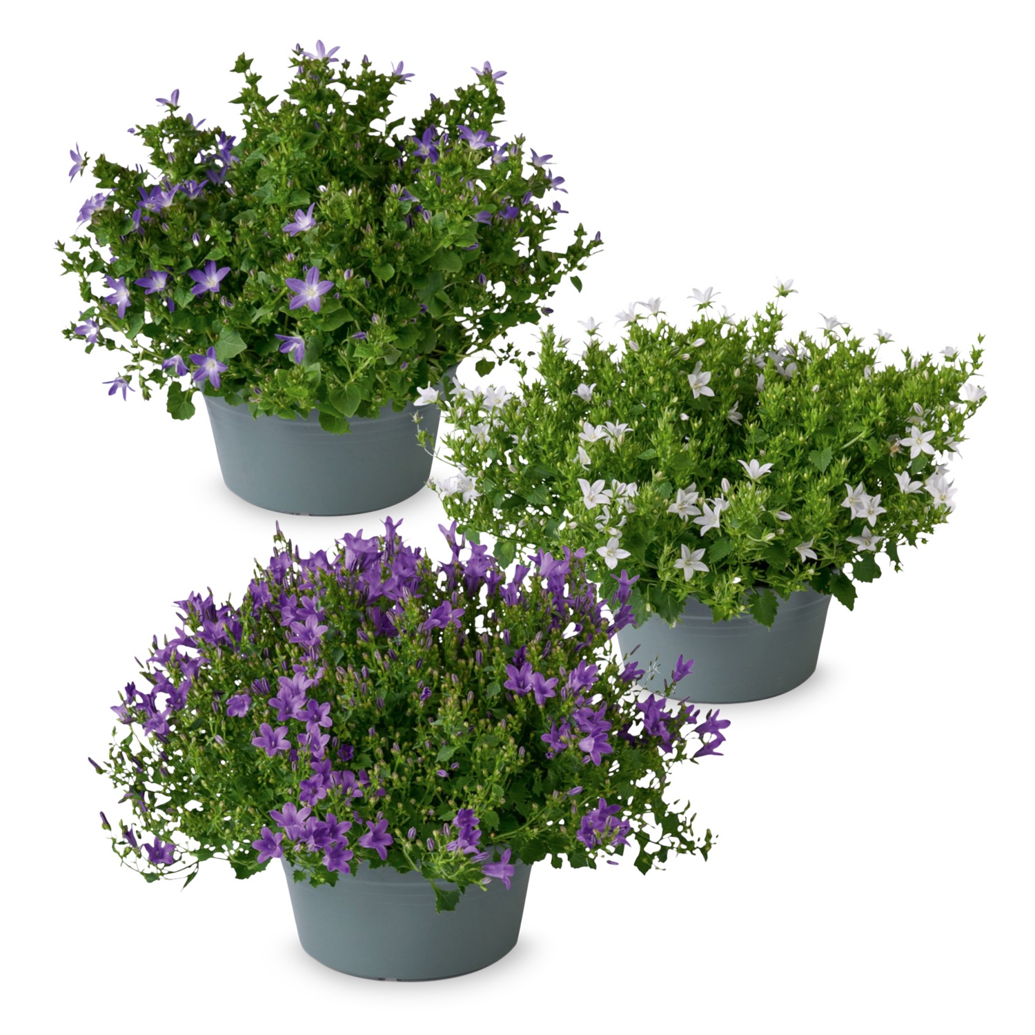 im 10,5 - cm - Kulturtopf, Ø 20 - cm - Schale oder im Balkonkasten, Höhe inkl. Gefäß: ca. 18 - 25 cm, in den Blütenfarben Purple, Lavendel, Pink und Weiß