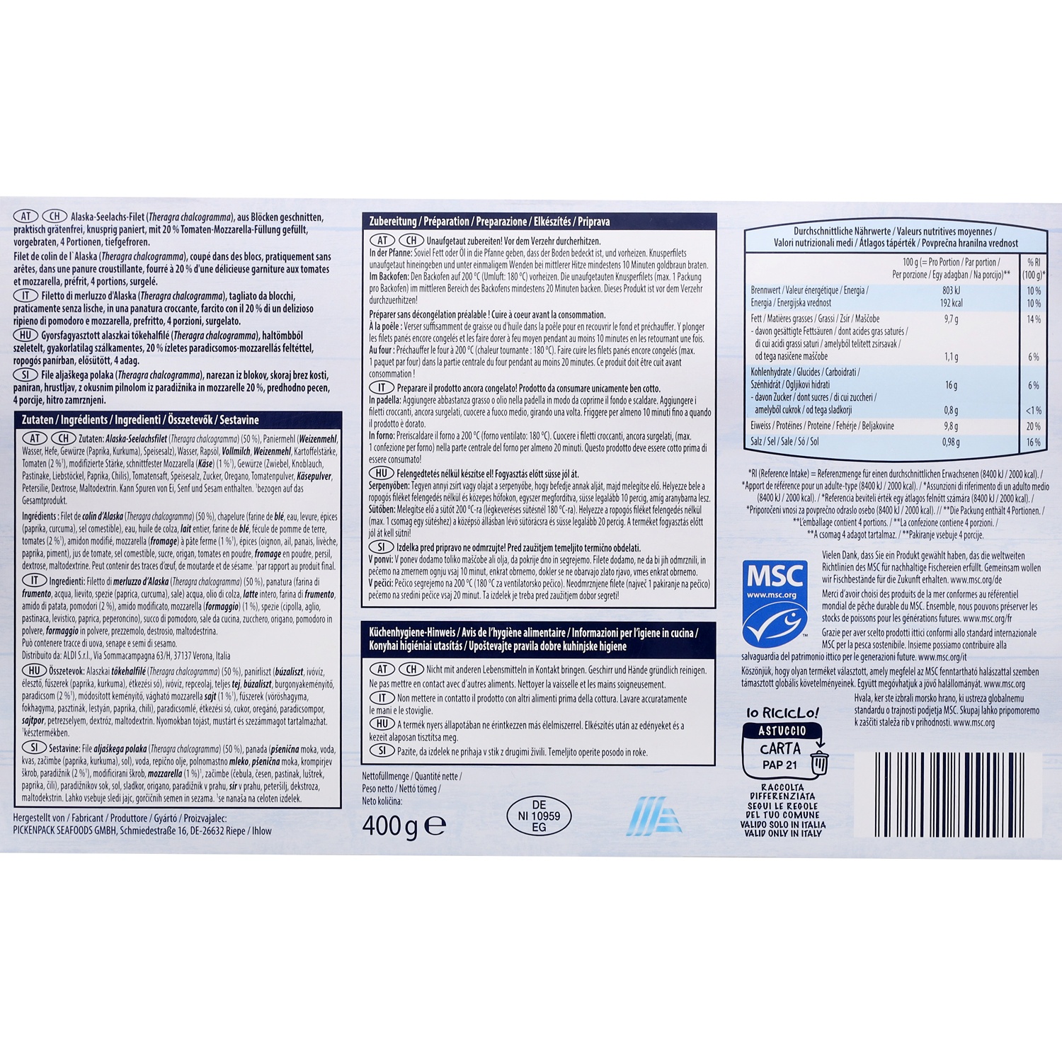 GOLDEN SEAFOOD Knusperfilets, Tomate-Mozzarella