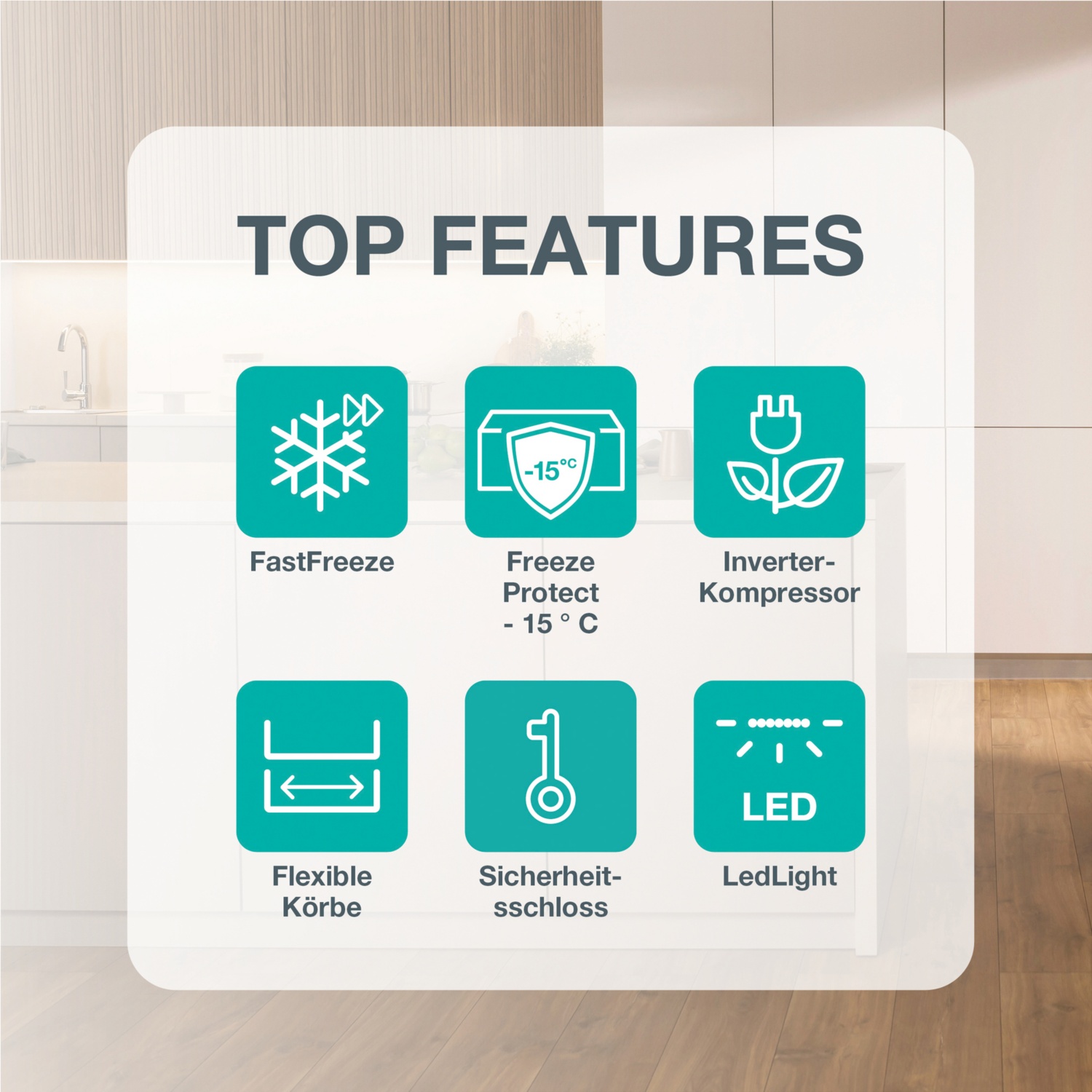 • Gefrierteil: 2 flexible Gefrierkörbe