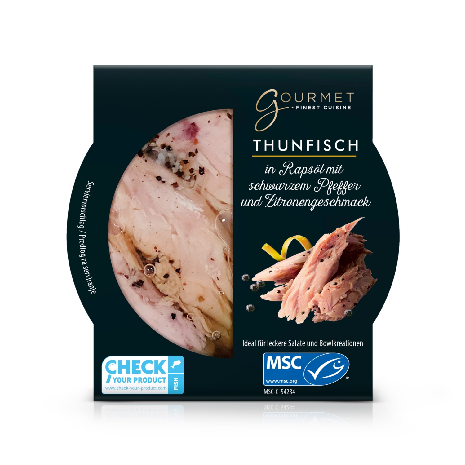 GOURMET FINEST CUISINE Thunfisch Mix, in Rapsöl mit schwarzem Pfeffer und Zitrone
