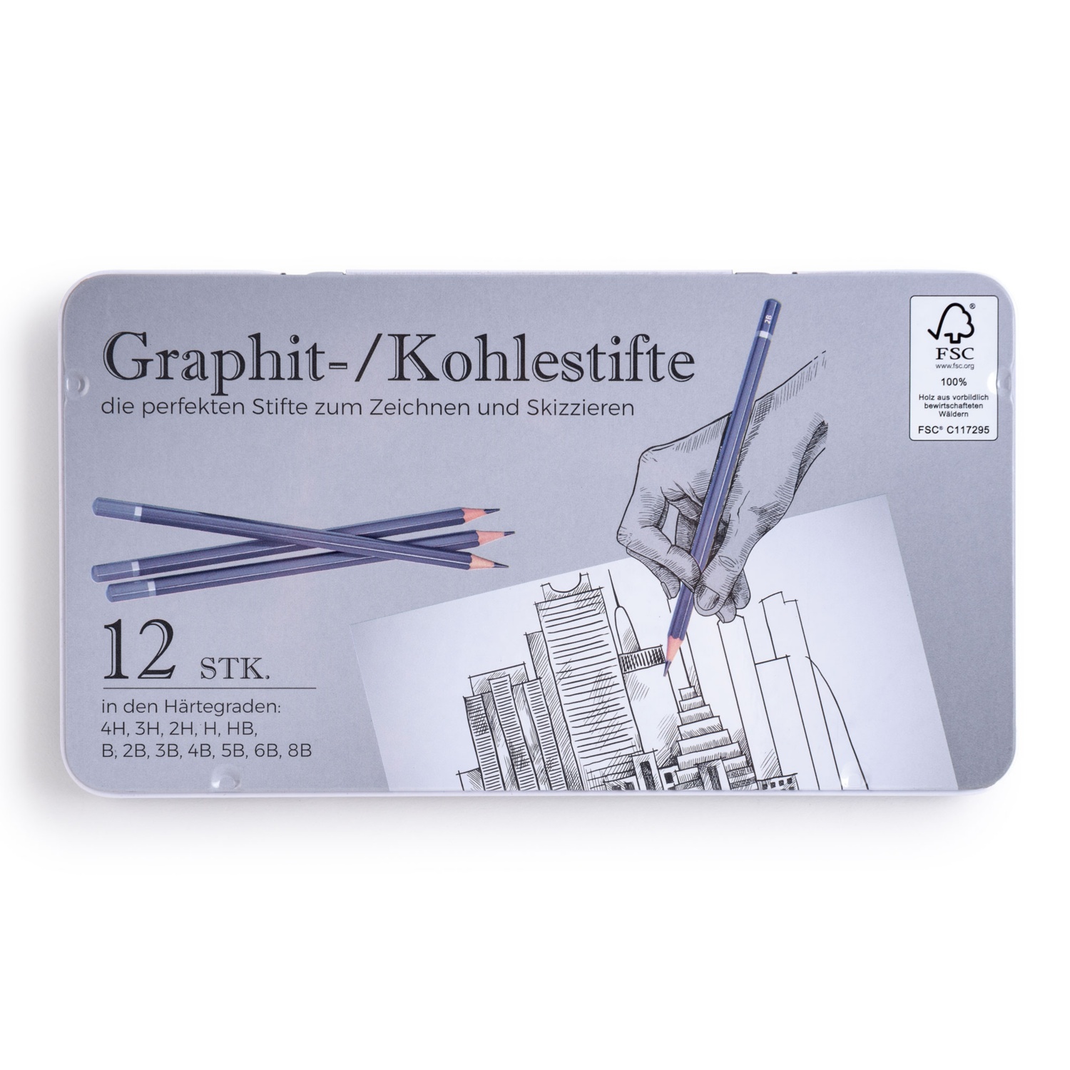 • 12 verschiedene Härtegrade, im Metalletui