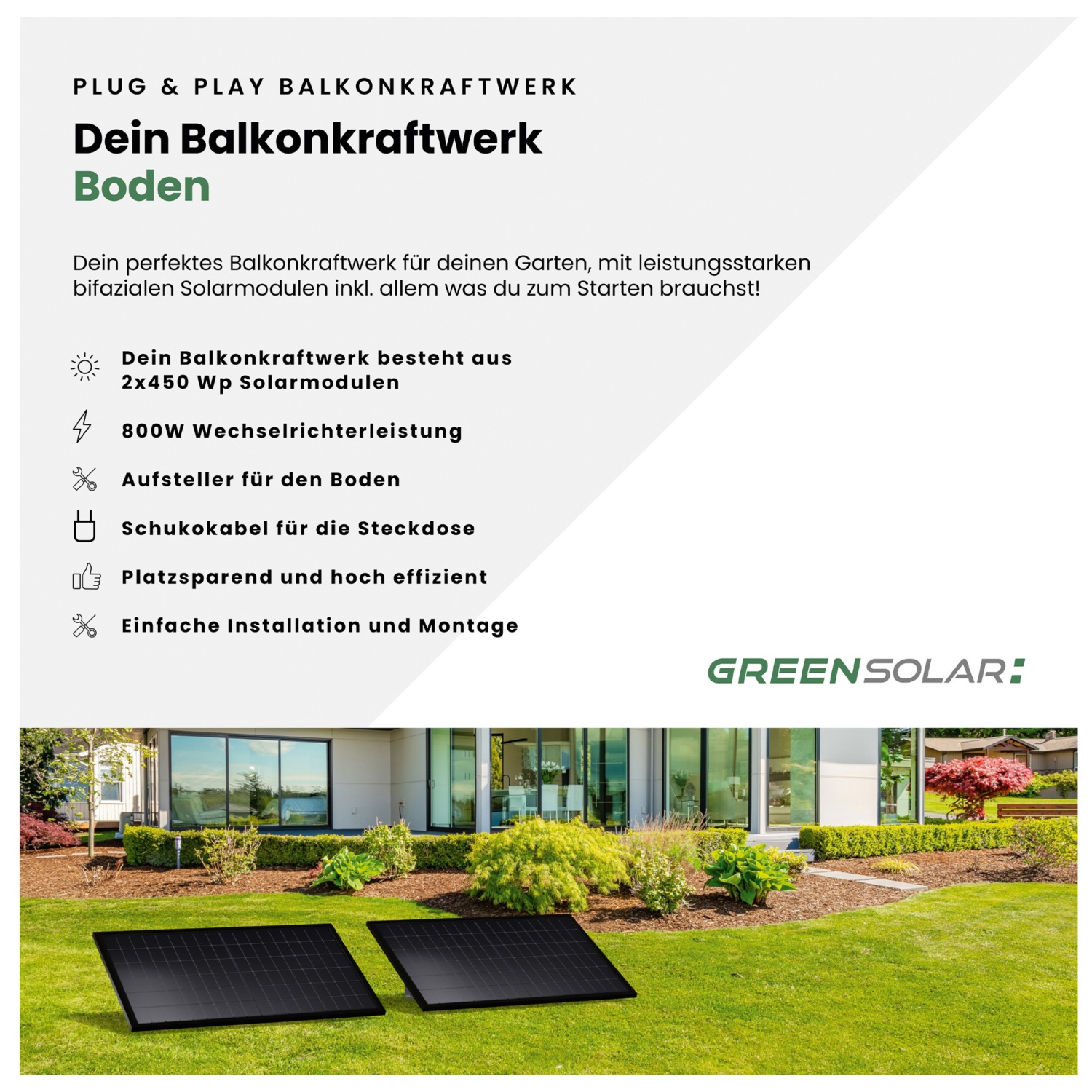 GREEN SOLAR Balkonkraftwerk Boden 900/800 W