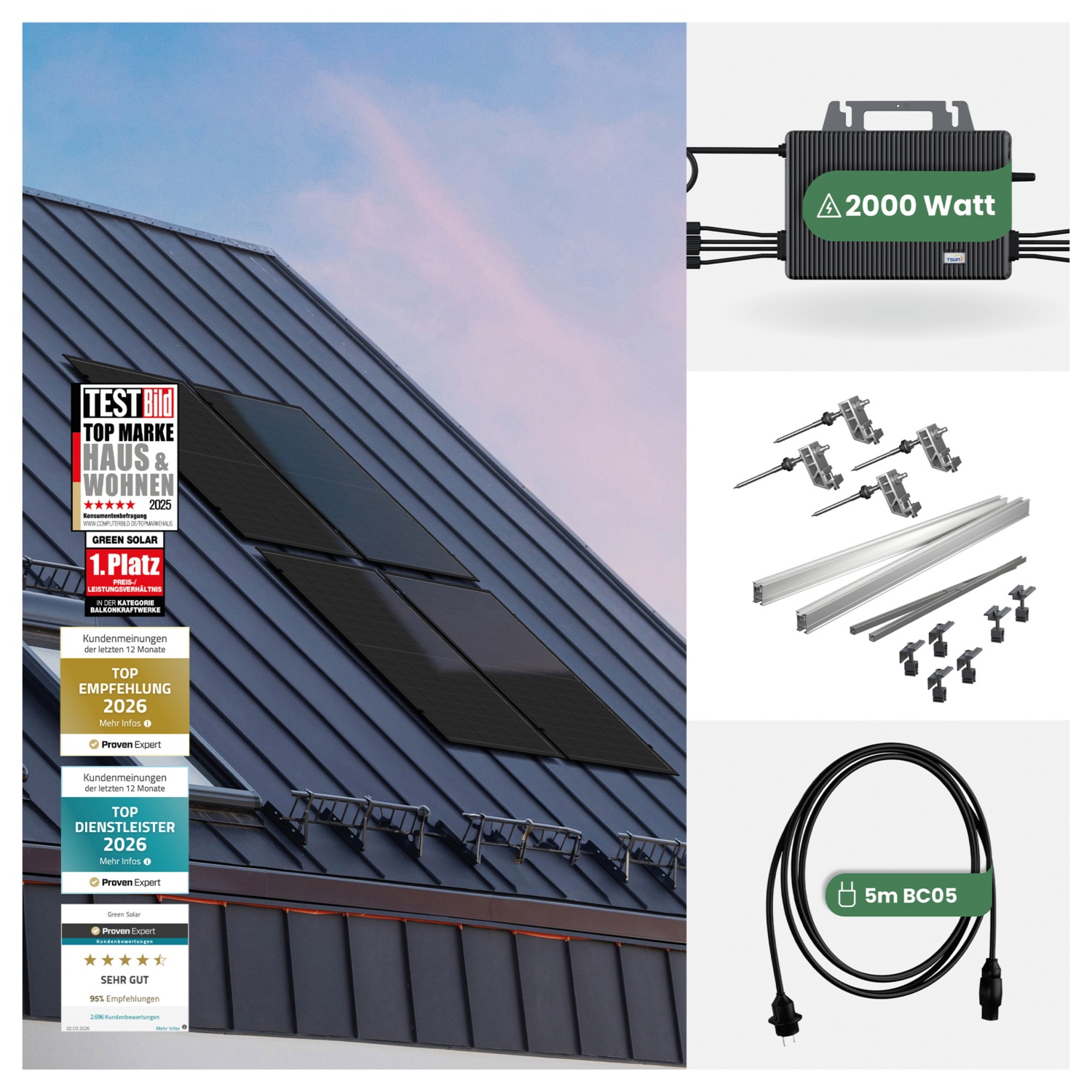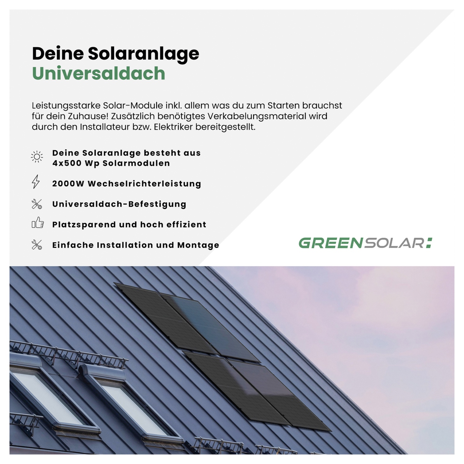 GREEN SOLAR Balkonkraftwerk Universaldach 2000/2000