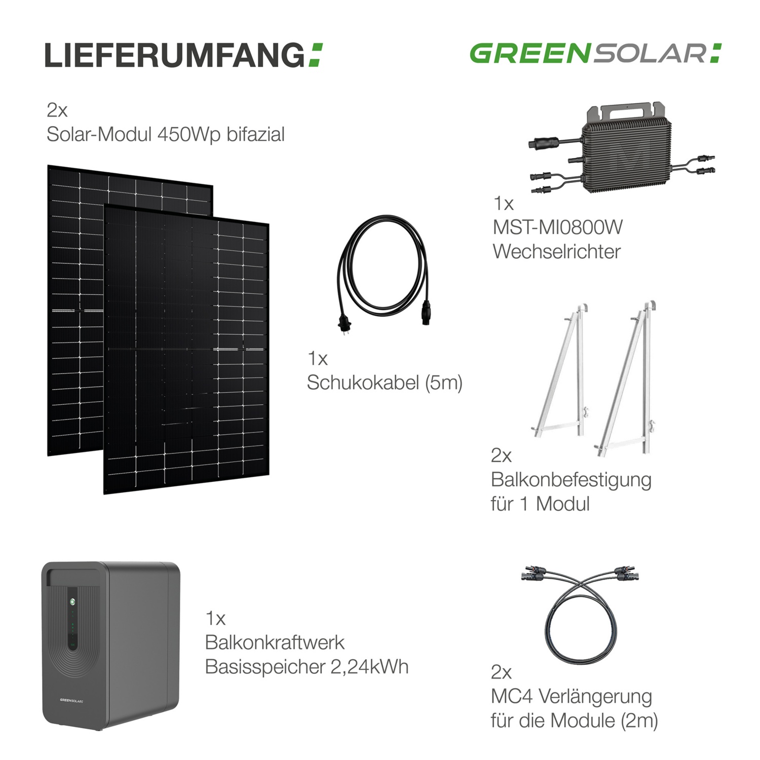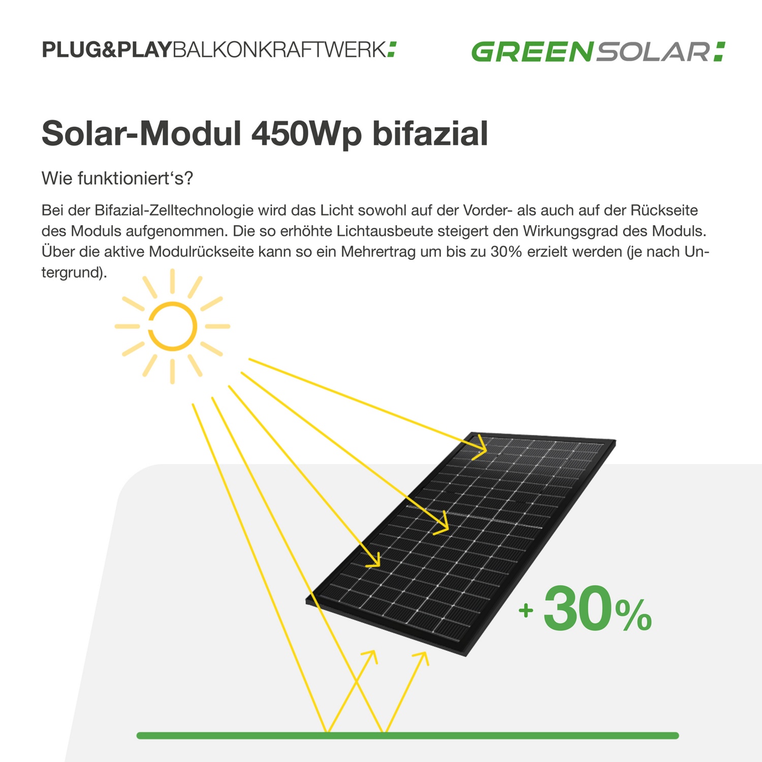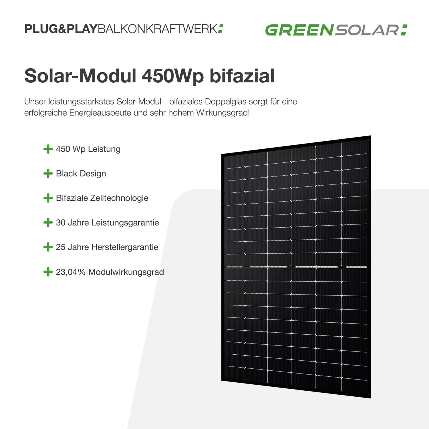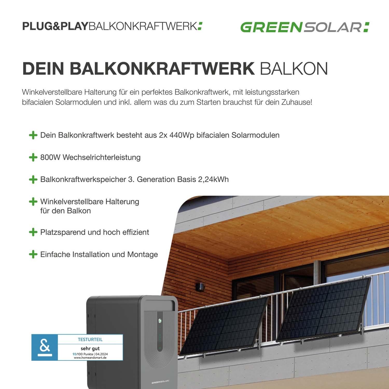 GREEN SOLAR GREEN SOLAR Balkonkraftwerk 900/800 W inkl. Batterie