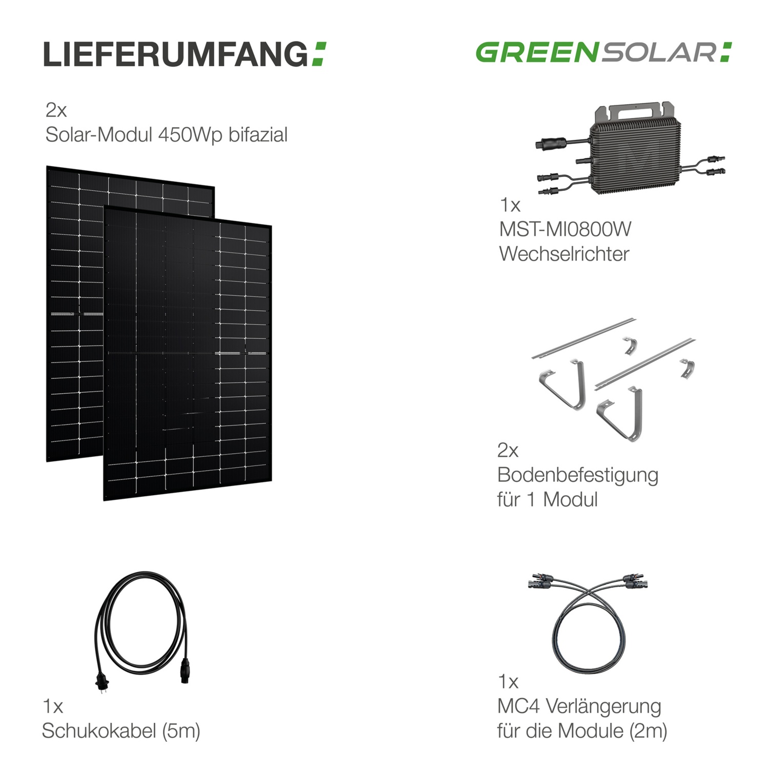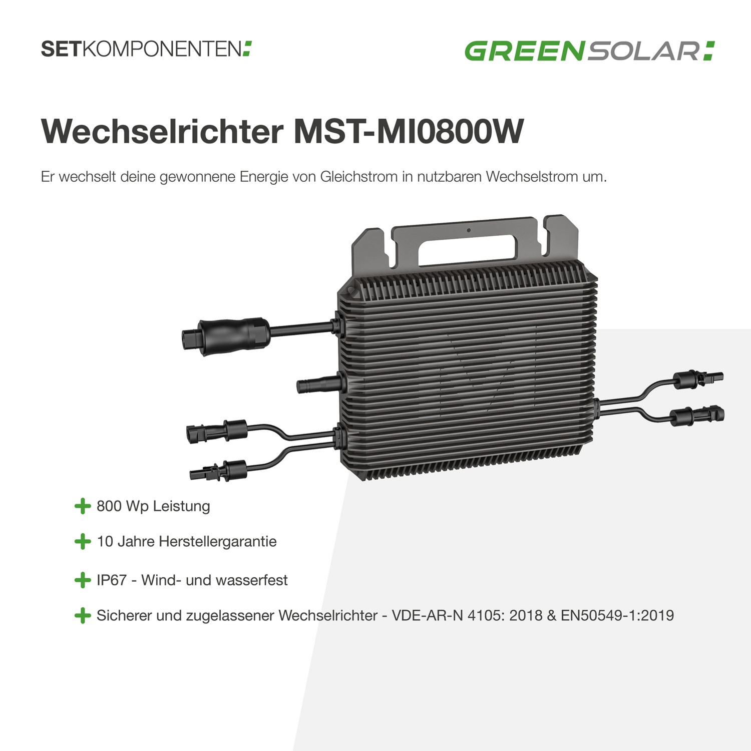 • 1x 800 W Wechselrichter