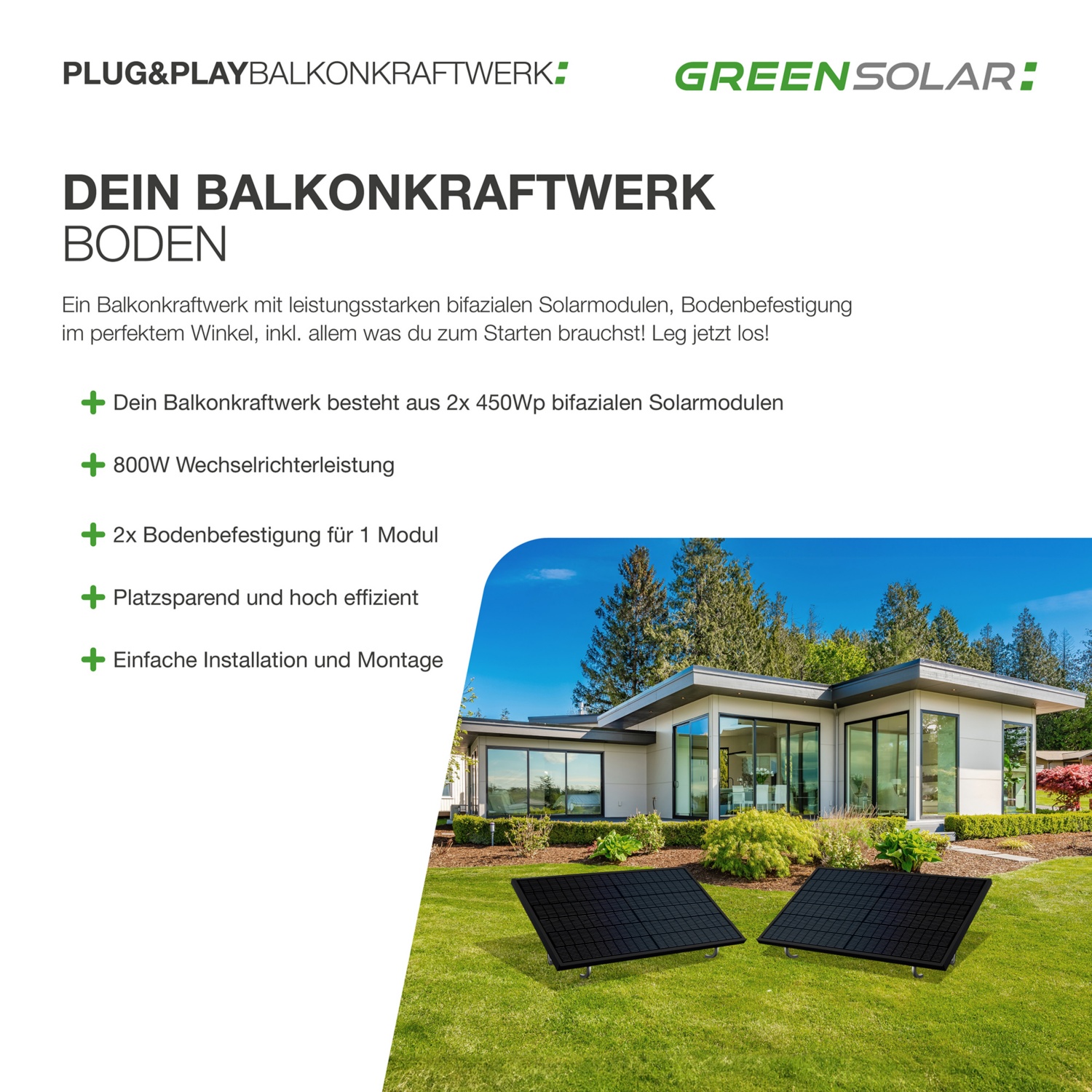 GREEN SOLAR GREEN SOLAR Balkonkraftwerk 900/800 W mit Bodenbefestigung