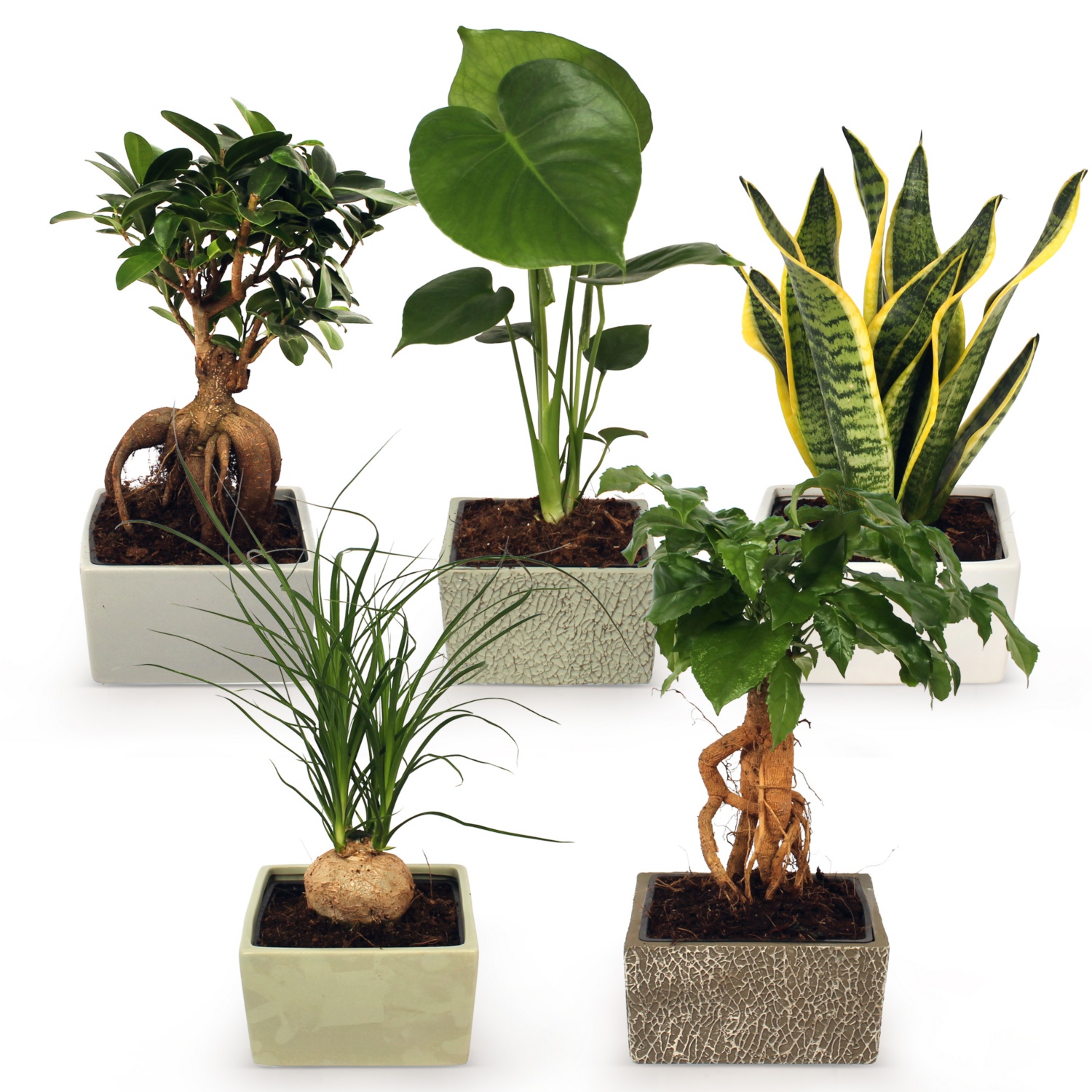 im ca. 15-cm-Keramiktopf, verschiedene Farben und Modelle, diverse pflegeleichte Grünpflanzen wie Elefantenfuß, Bogenhanf, Zimmeresche etc.