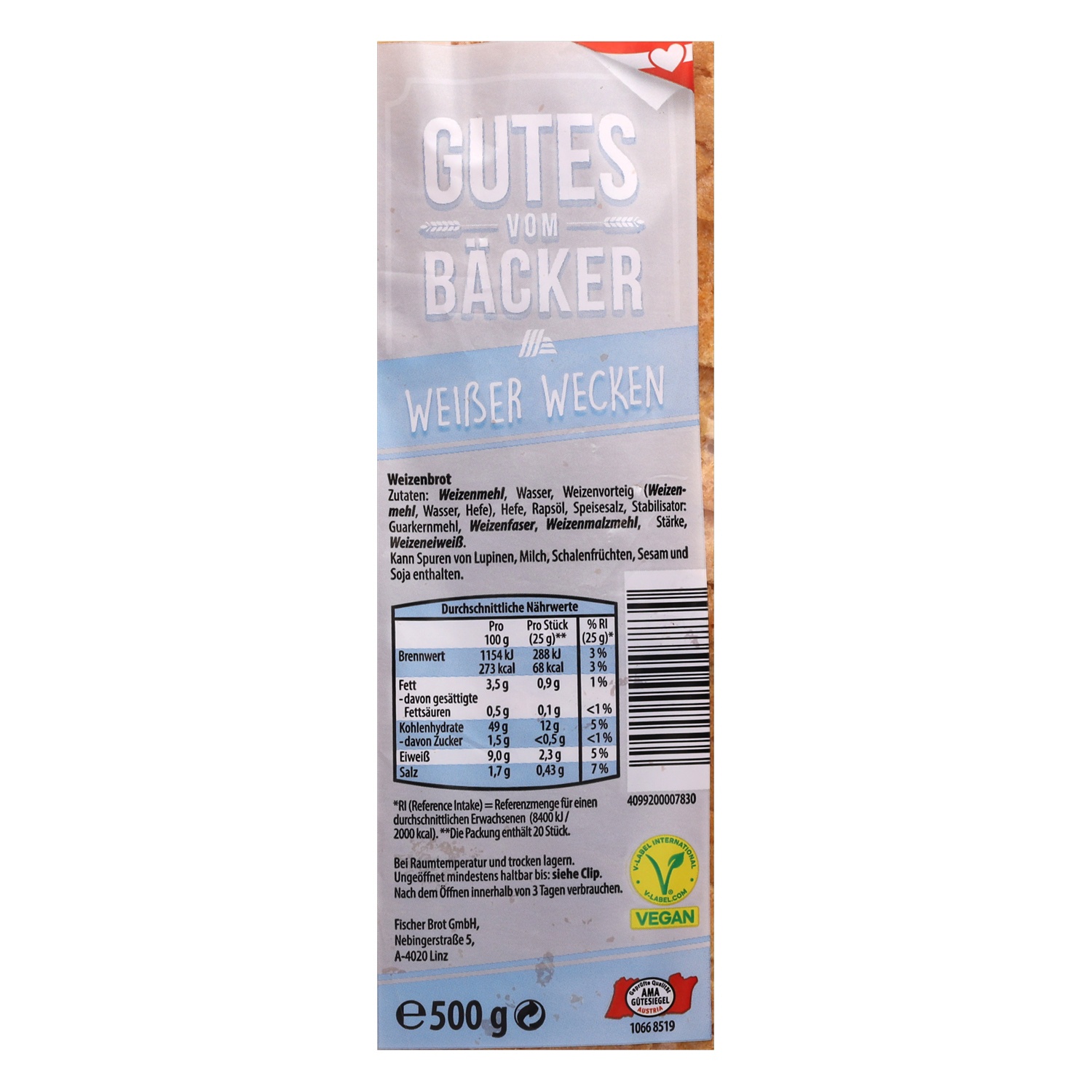 GUTES VOM BÄCKER Weißer Wecken geschnitten