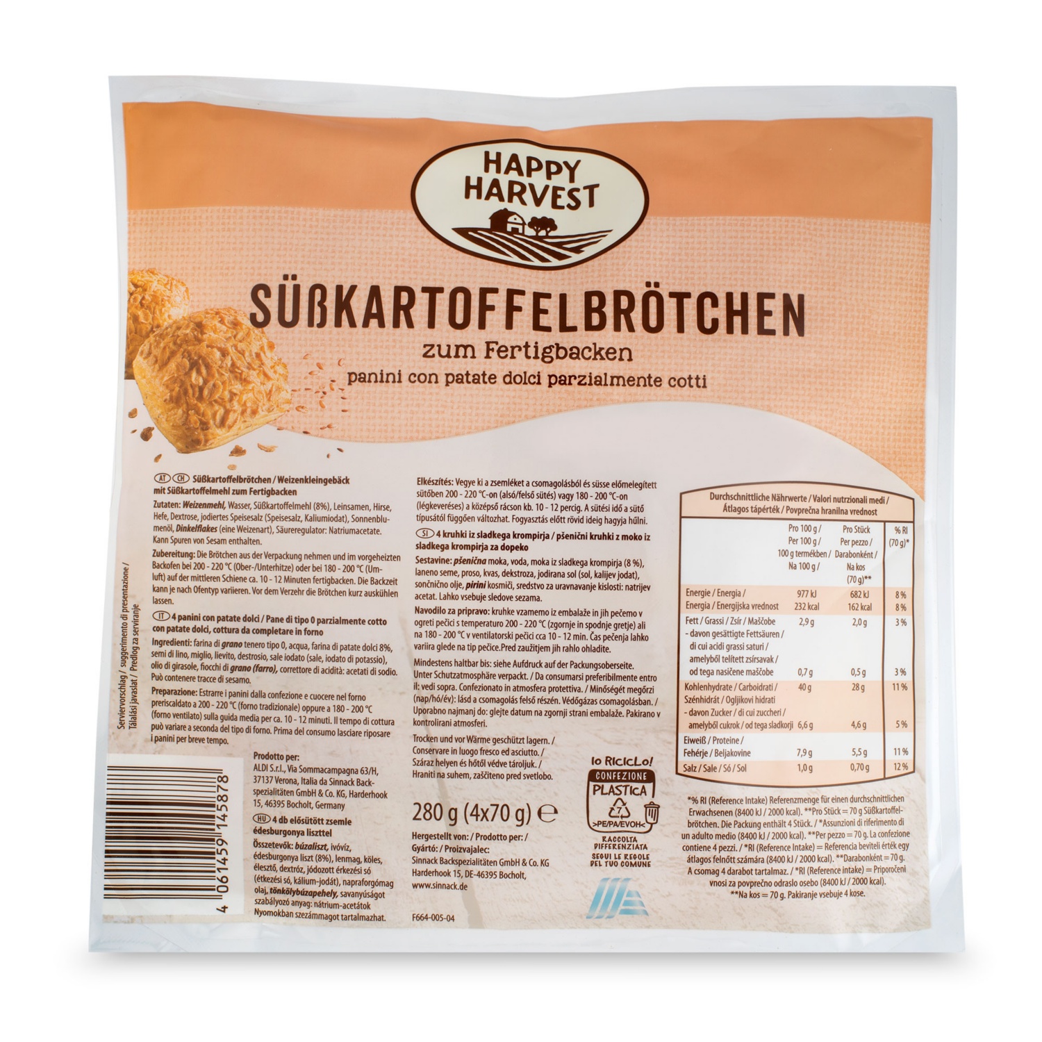HAPPY HARVEST Brötchen 4er, Süsskartoffel